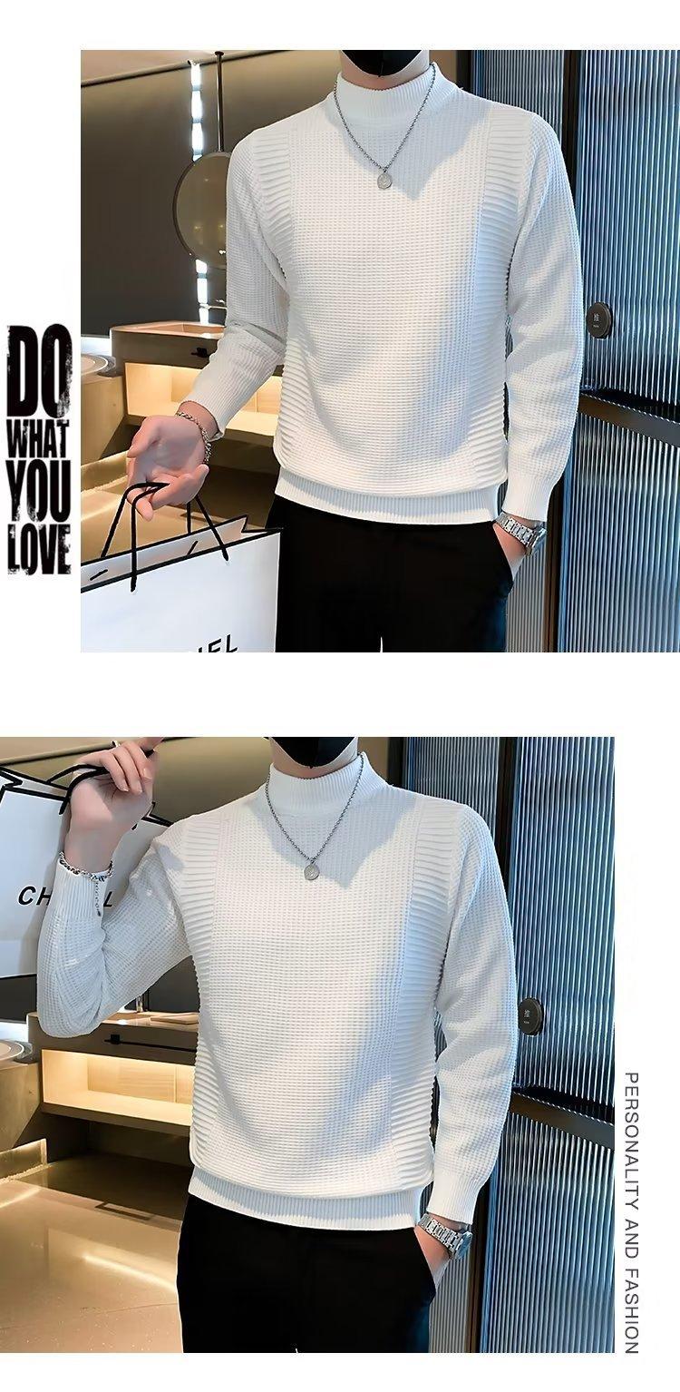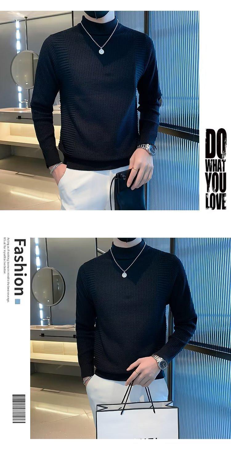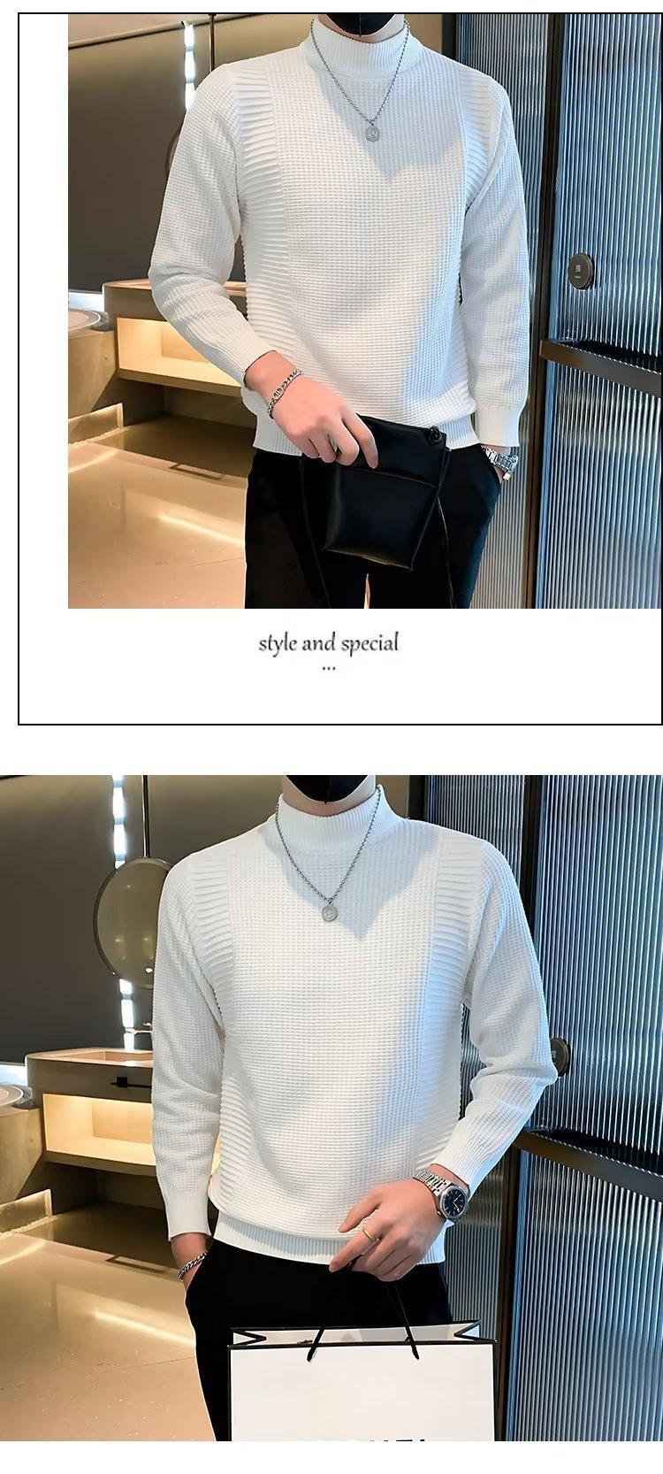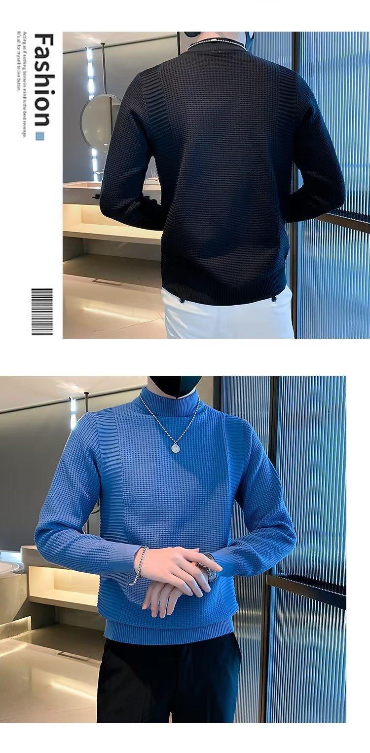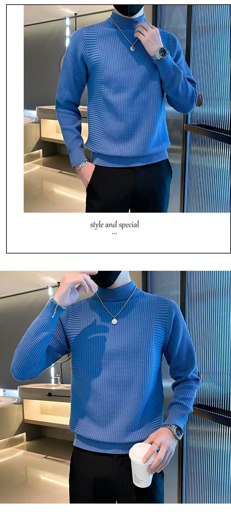 Suéter de medio cuello alto para hombre primavera y otoño color sólido casual suéter de fondo japonés moderno simple guapo suéter pulóver