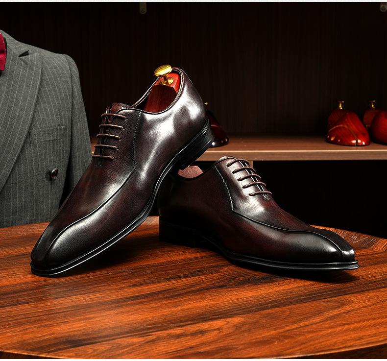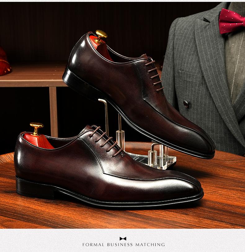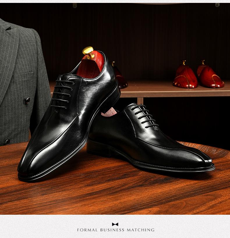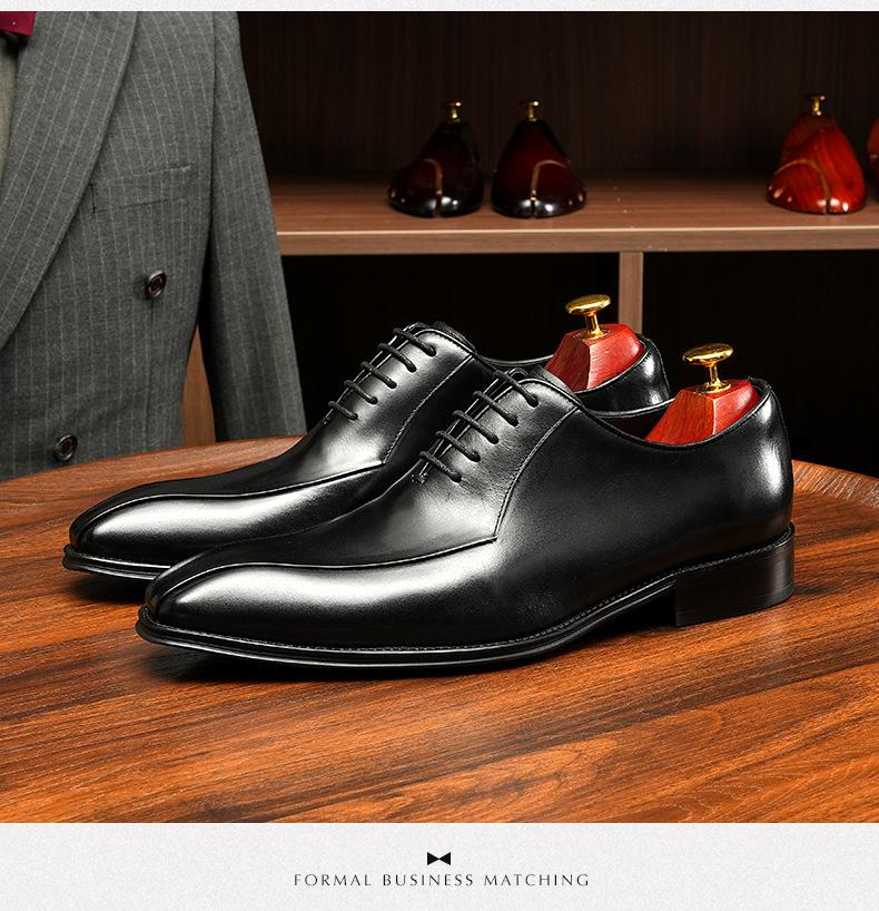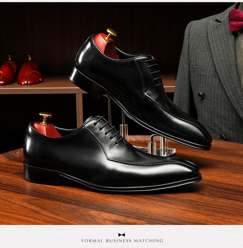 Zapatos formales de cuero para negocios británicos, zapatos de boda para hombre, zapatos oxford de cuero genuino con punta, zapatos de boda de moda hechos a mano para hombre