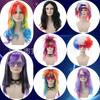 Peluca de bruja para fiesta de Halloween, cosplay, conjunto de peluca de onda grande, forma de personaje, punto medio, beige, pelo largo y rizado