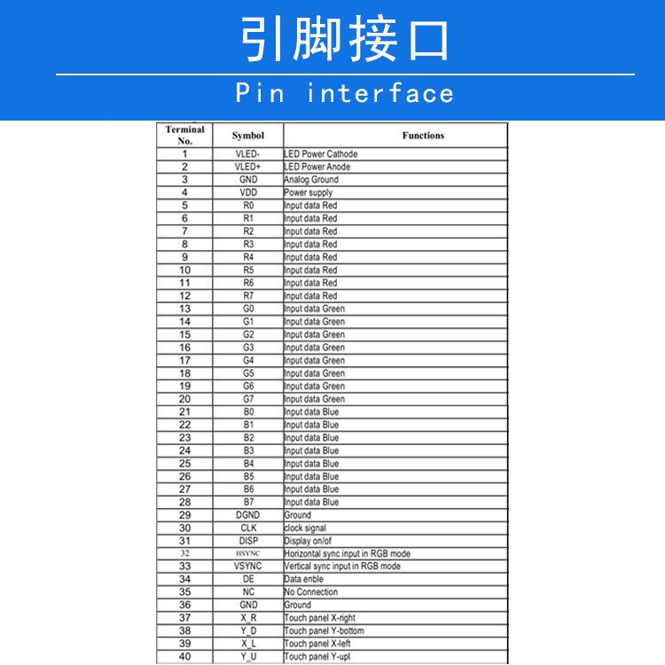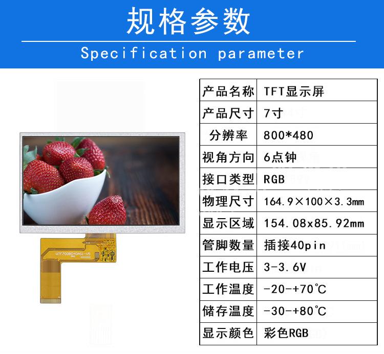 El nuevo módulo LCD de pantalla a color industrial de 7 pulgadas con conector de interfaz RGB de 40 pines se puede equipar con TP