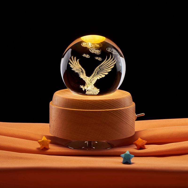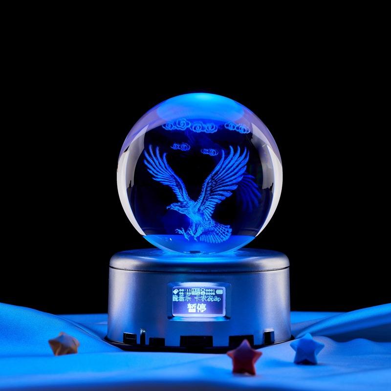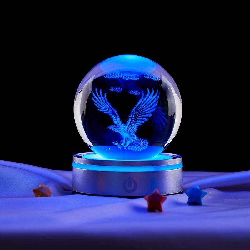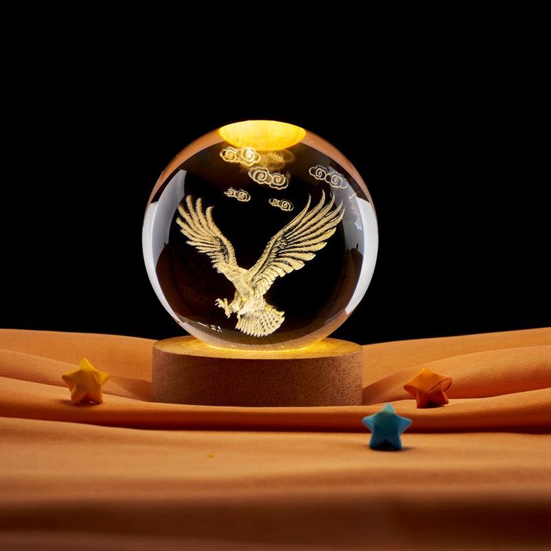 Grabado láser 3D transfronterizo de águila para crear una bola de cristal luminosa de noche para escritorio, pequeños adornos creativos.