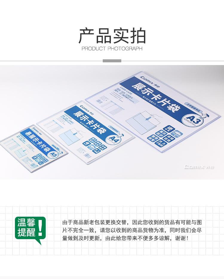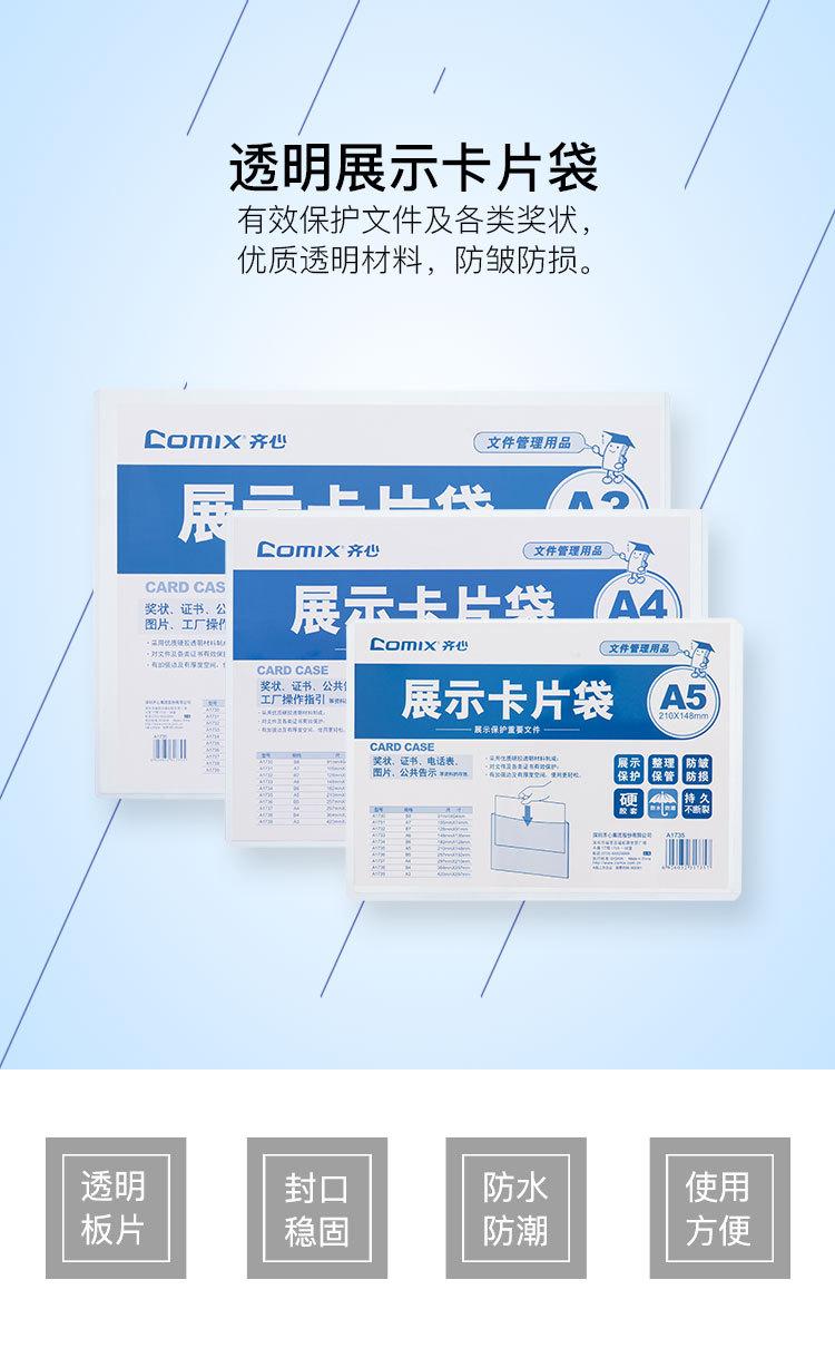 Bolsa para tarjetas Comix A1737 de fácil presentación, tamaño A4, rígida