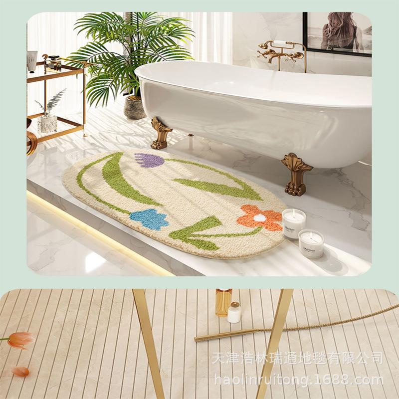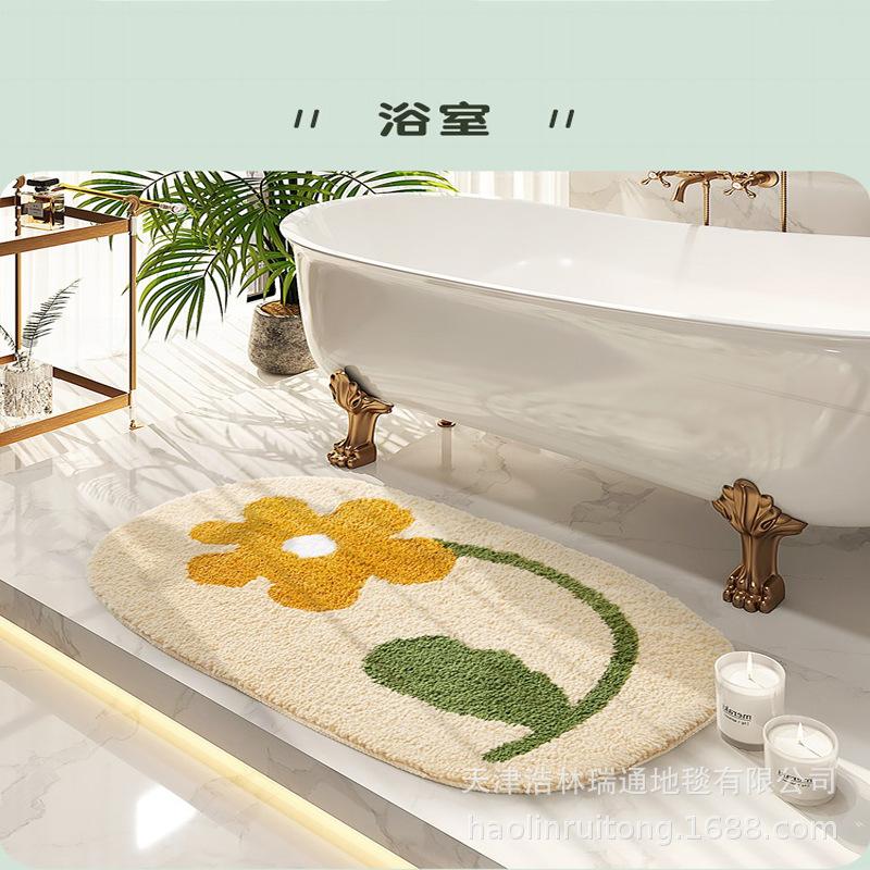 Alfombra de Piso Absorbente para Baño Flor Fresca Pequeña Hogar Inodoro Antideslizante Alfombra para Pies Alfombra para Puerta de Ducha de Inodoro