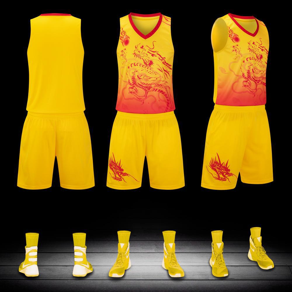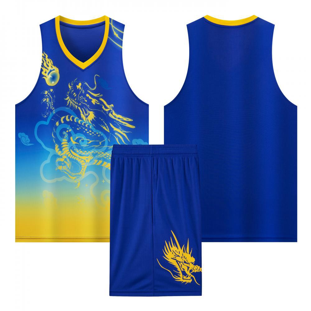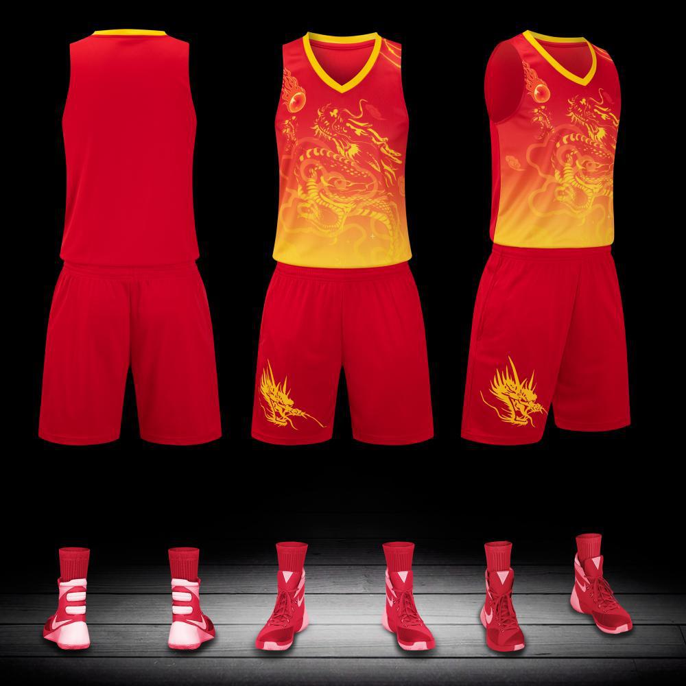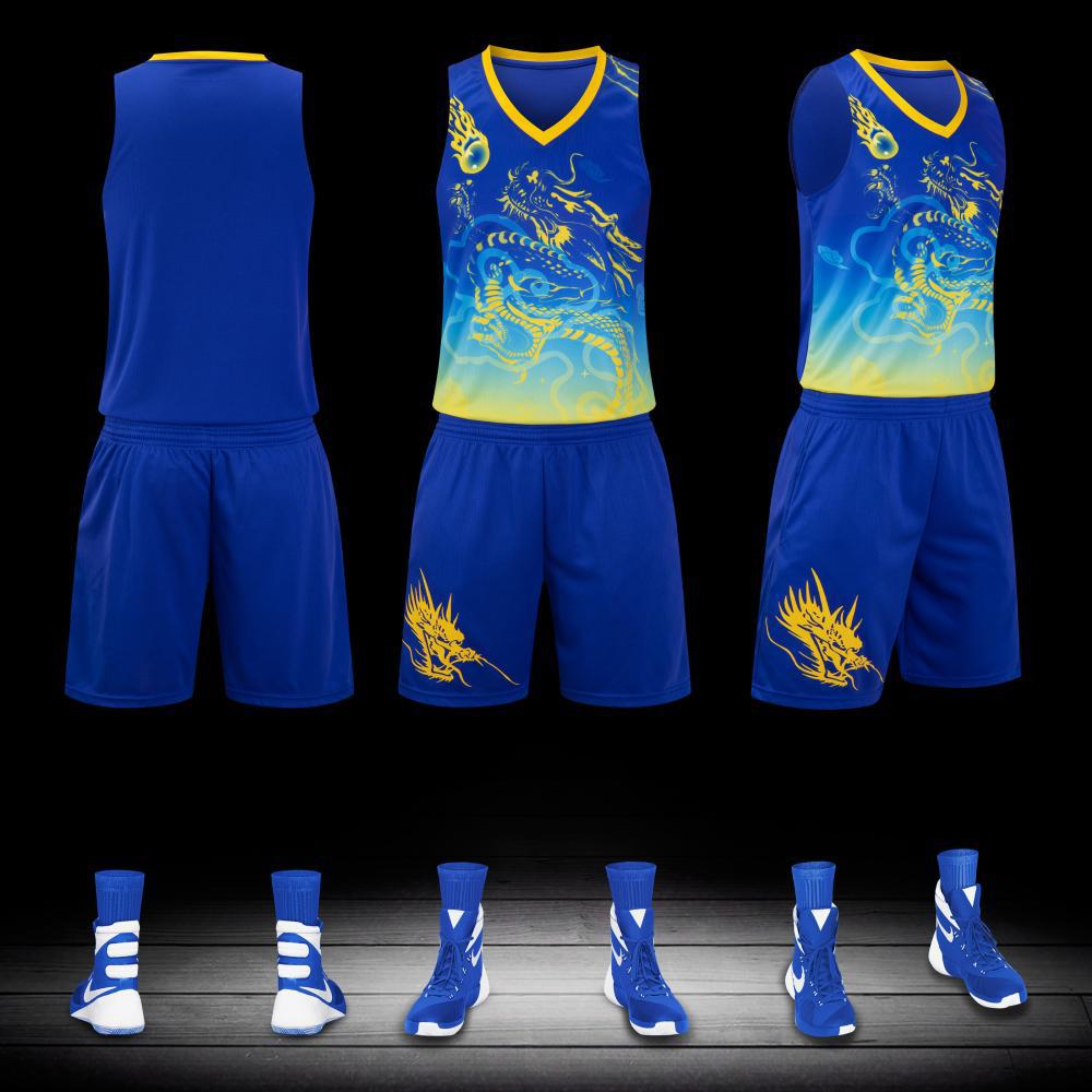 Lote directo de fábrica 2023 nuevo traje de ropa de baloncesto con patrón de dragón estampado transpirable entrenamiento de competición equipo ropa de bote dragón bolsa doble