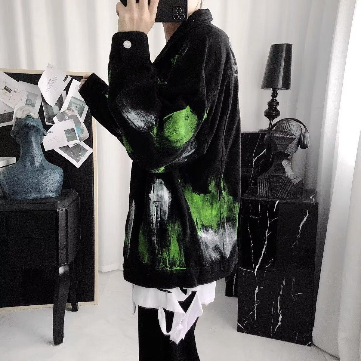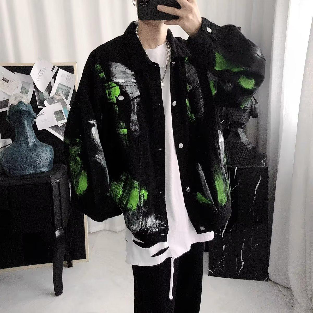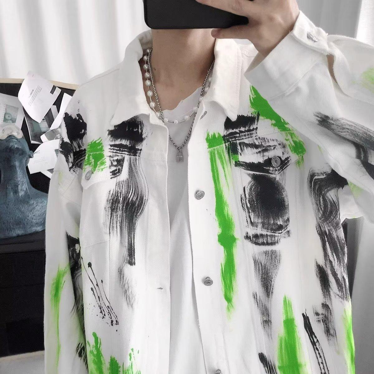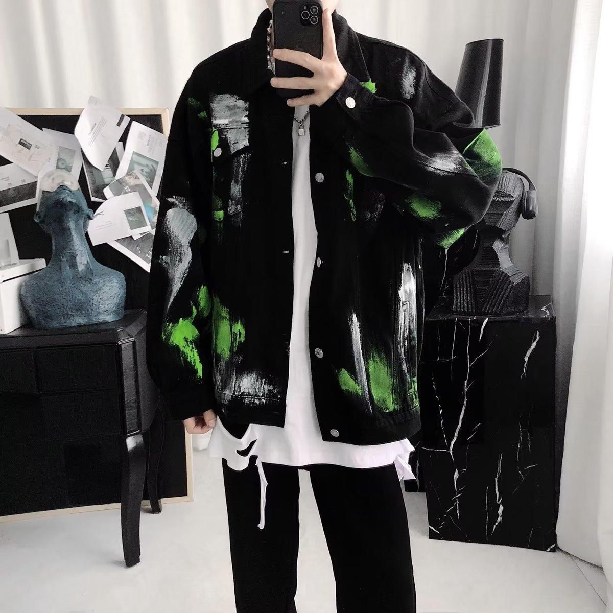Abrigo de mezclilla teñido anudado para hombre, primavera y otoño, nueva chaqueta de trabajo holgada con grafiti, ropa superior informal de marca de moda coreana