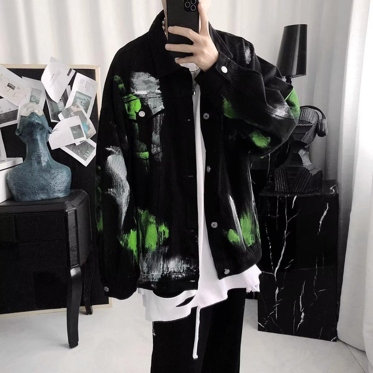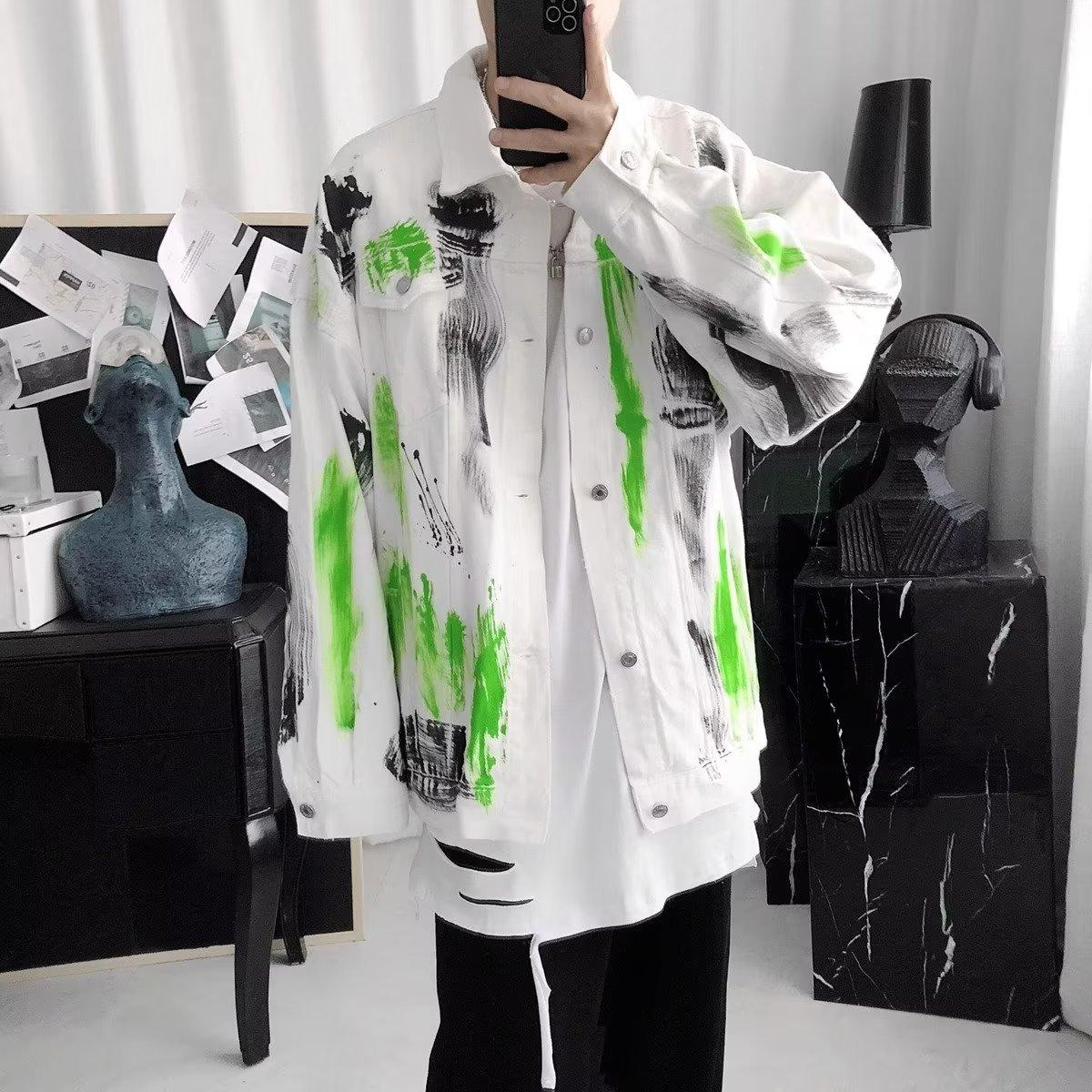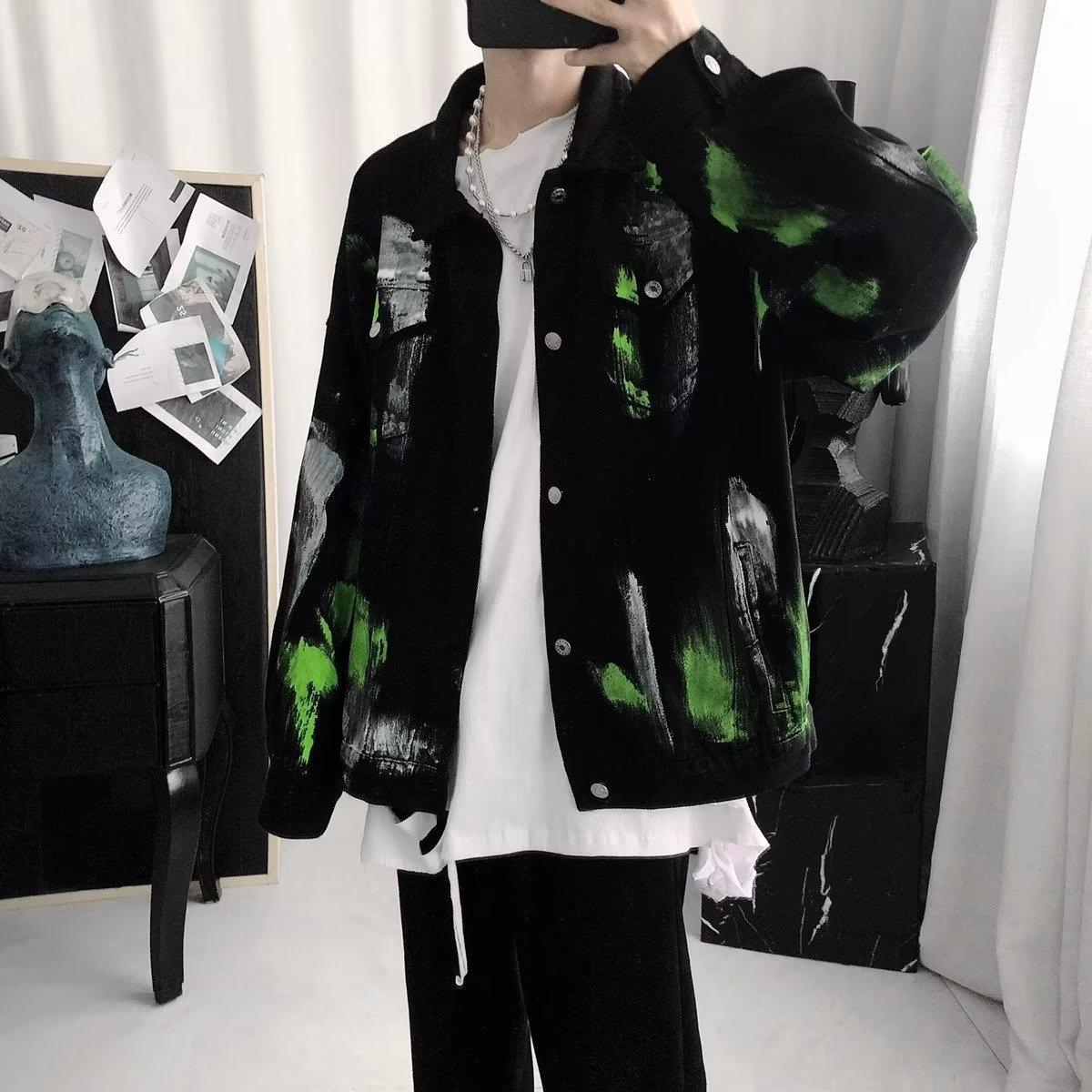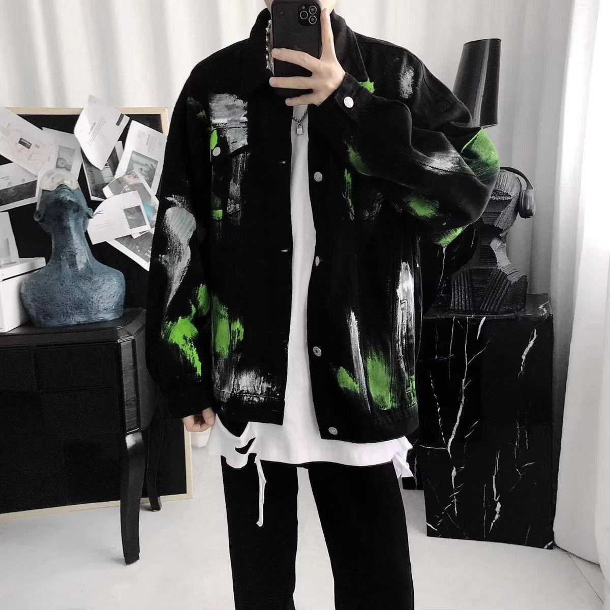 Abrigo de mezclilla teñido anudado para hombre, primavera y otoño, nueva chaqueta de trabajo holgada con grafiti, ropa superior informal de marca de moda coreana