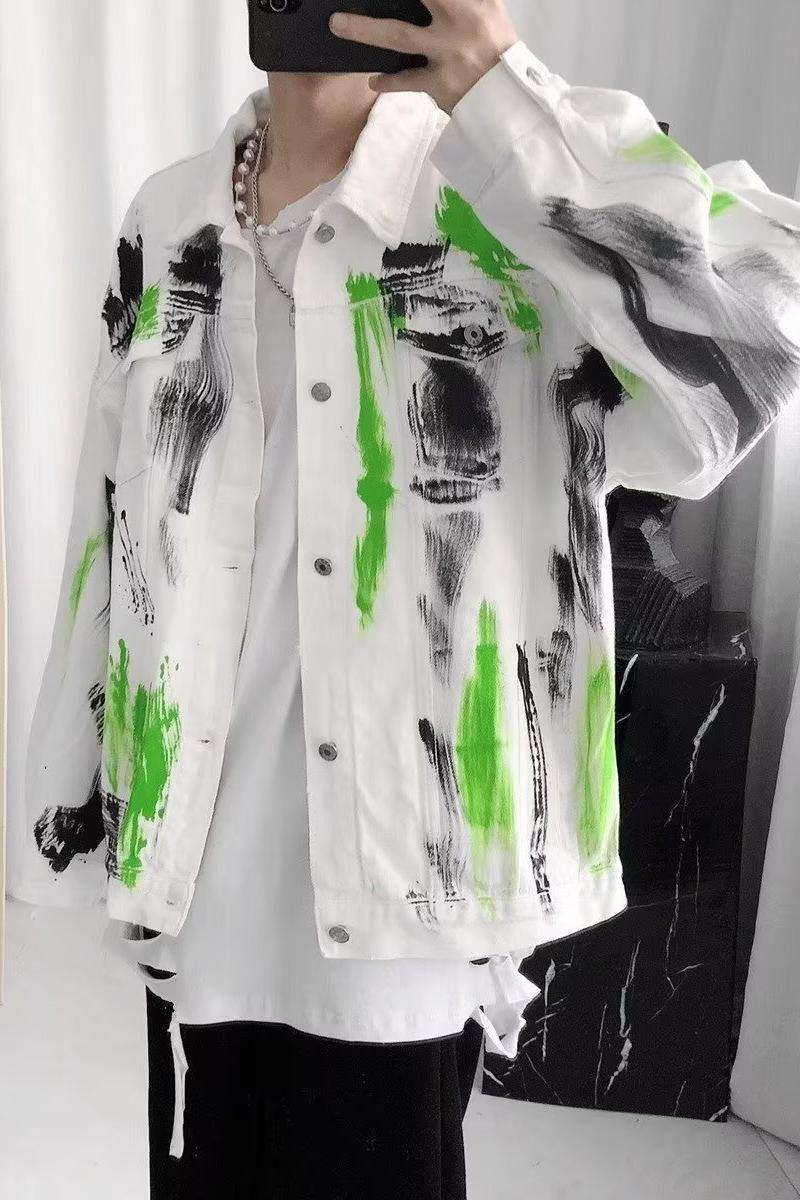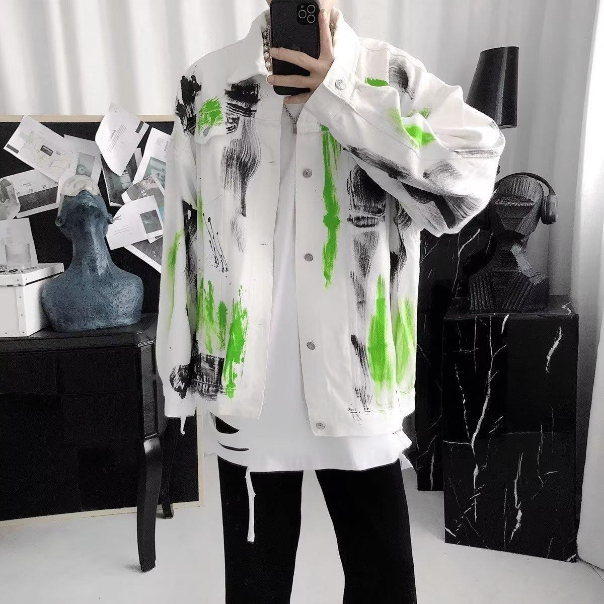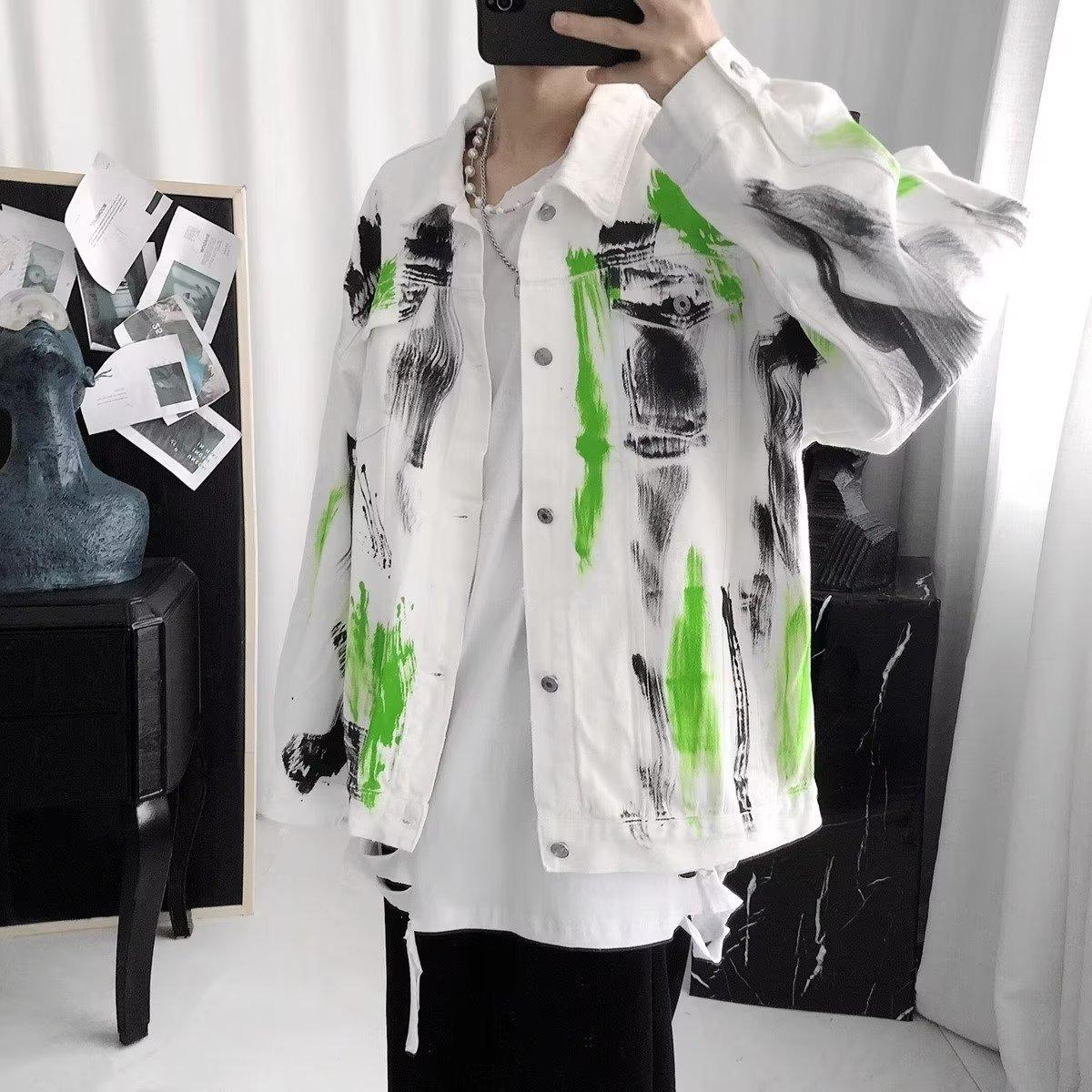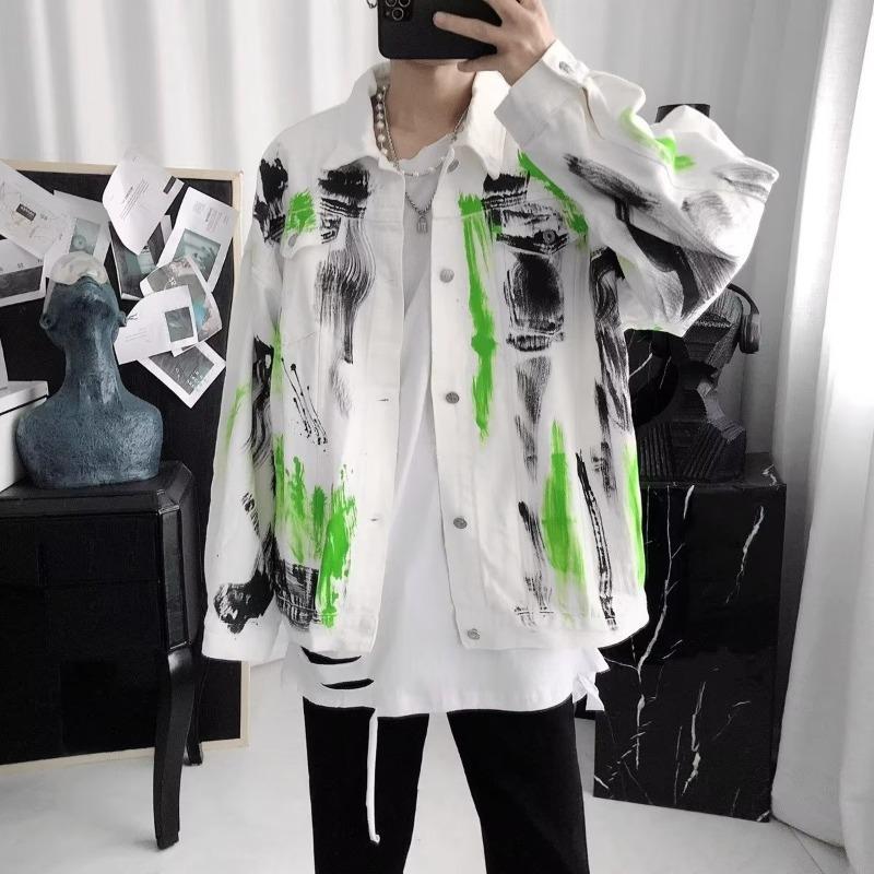 Abrigo de mezclilla teñido anudado para hombre, primavera y otoño, nueva chaqueta de trabajo holgada con grafiti, ropa superior informal de marca de moda coreana