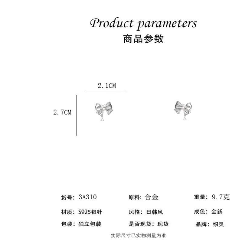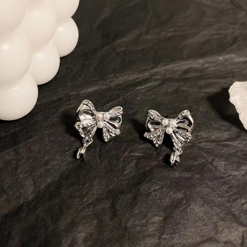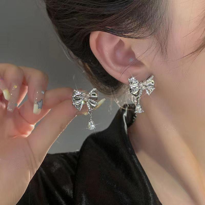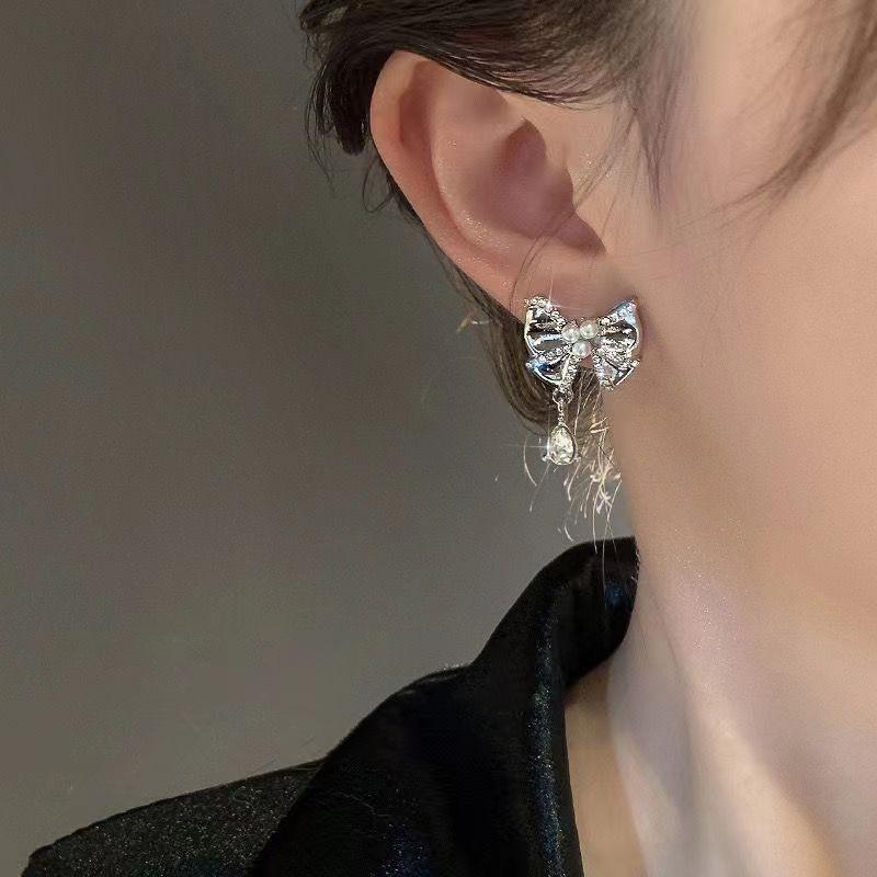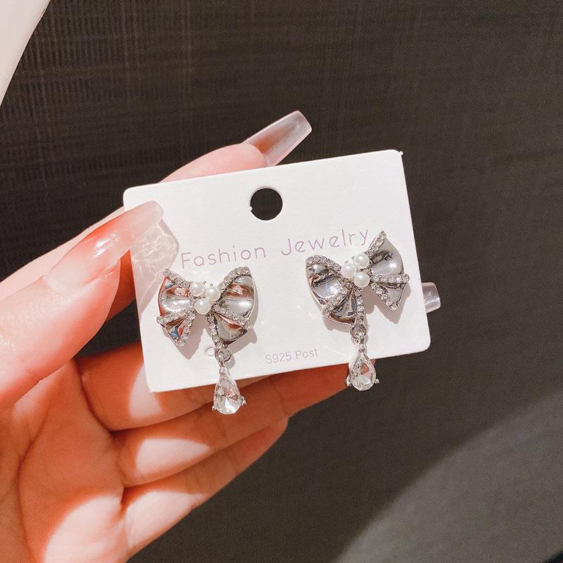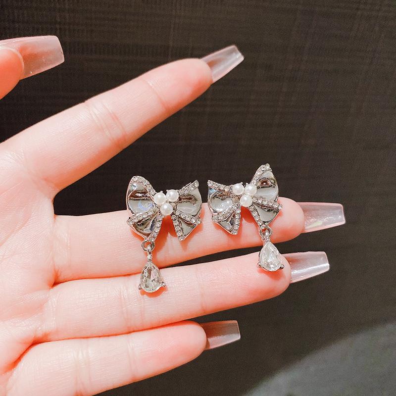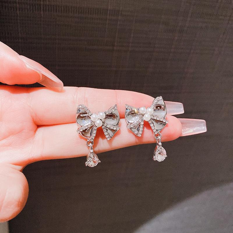 Compra Pendientes de lazo ligeros de lujo de estilo japonés y coreano, pendientes con incrustaciones de perlas de aguja de plata 952, pendientes dulces, pendientes de viento frío, venta al por mayor al por mayor en Joom.pro