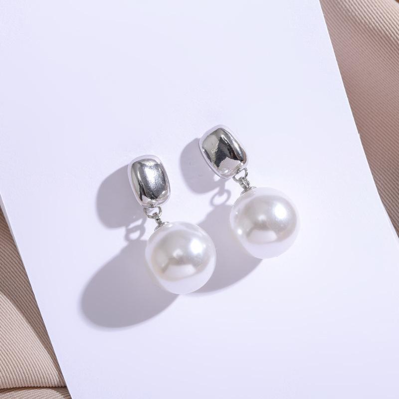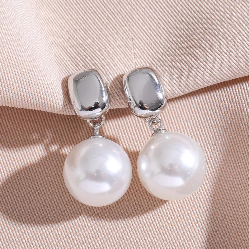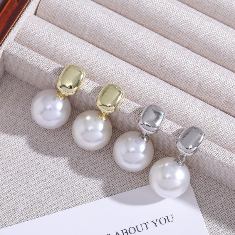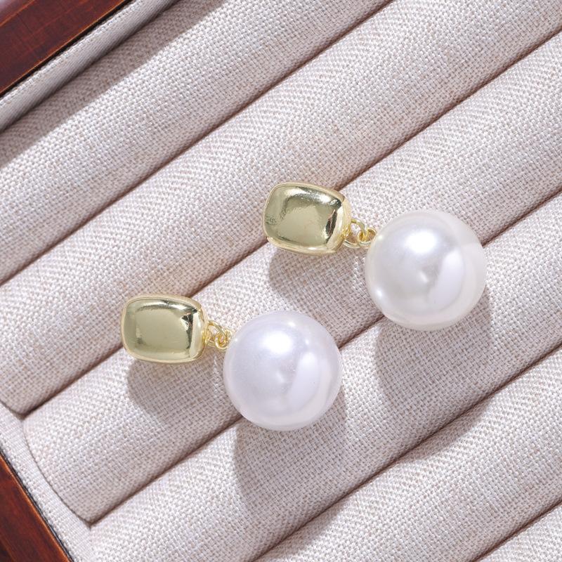 Pendientes de plata con diseño geométrico de perla retro francesa para mujer, de alta gama, ligeros, elegantes y sencillos.