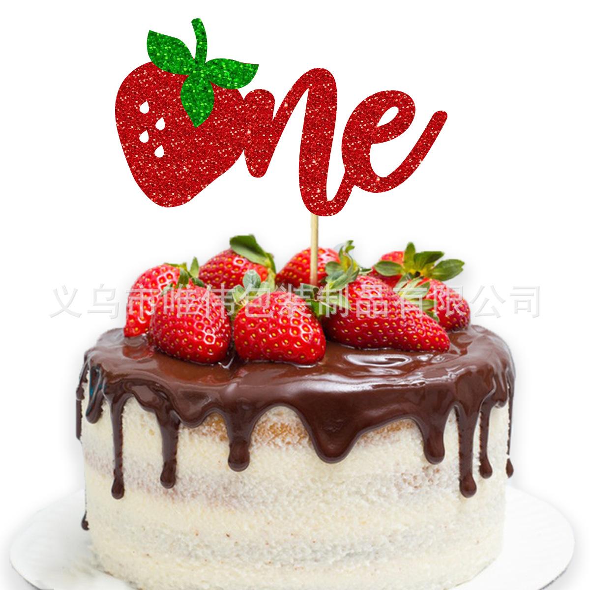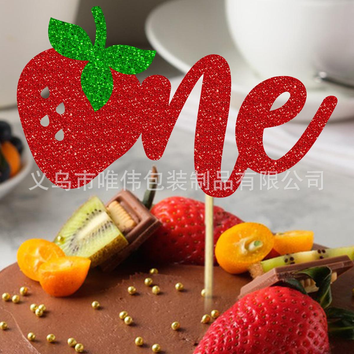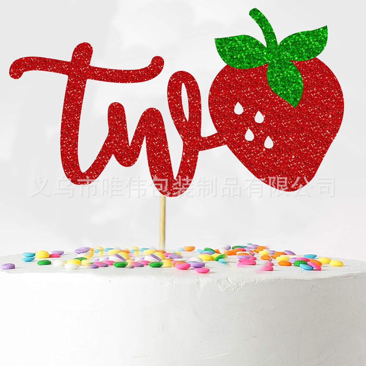Inserto de tarjeta para tarta de cumpleaños de bebé con temática de frutas de verano, decoración para fiesta de cumpleaños de bebé, diseño de fresas uno dos