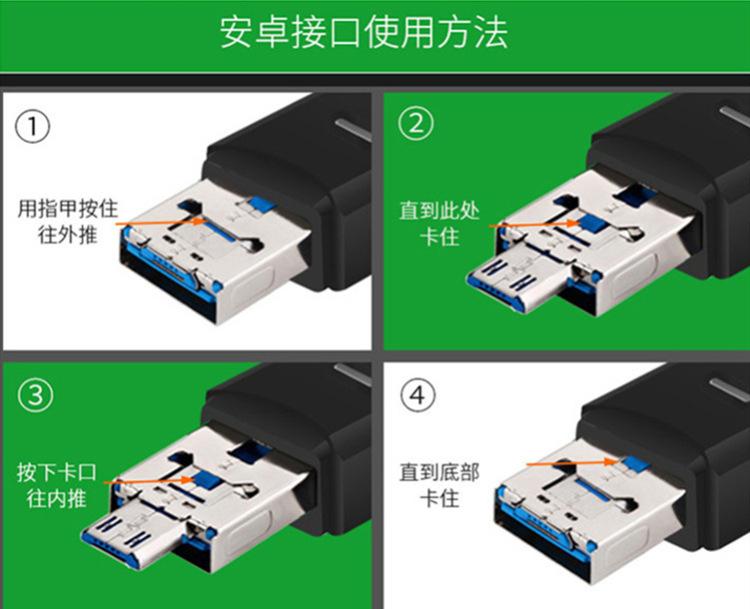 Interfaz del producto: Tipo-c + MicroUSB + USB 2.0 tres en uno