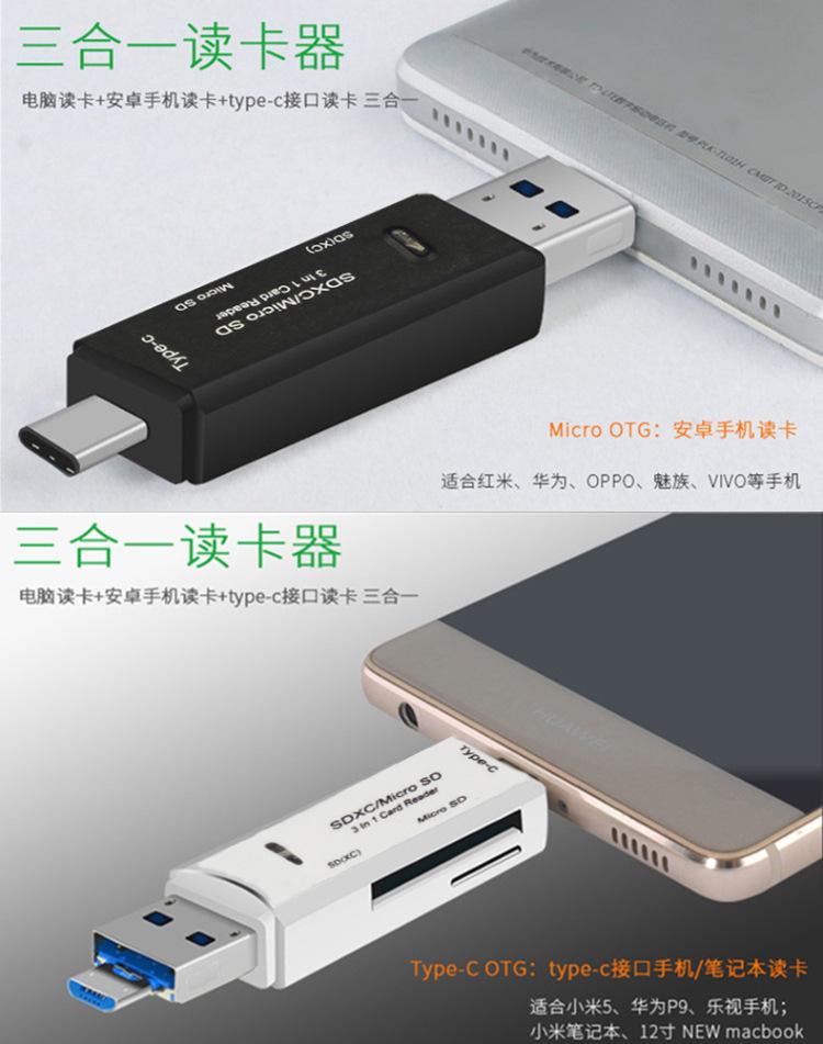 Nombre del producto: Lector de tarjetas OTG 3 en 1 2.0