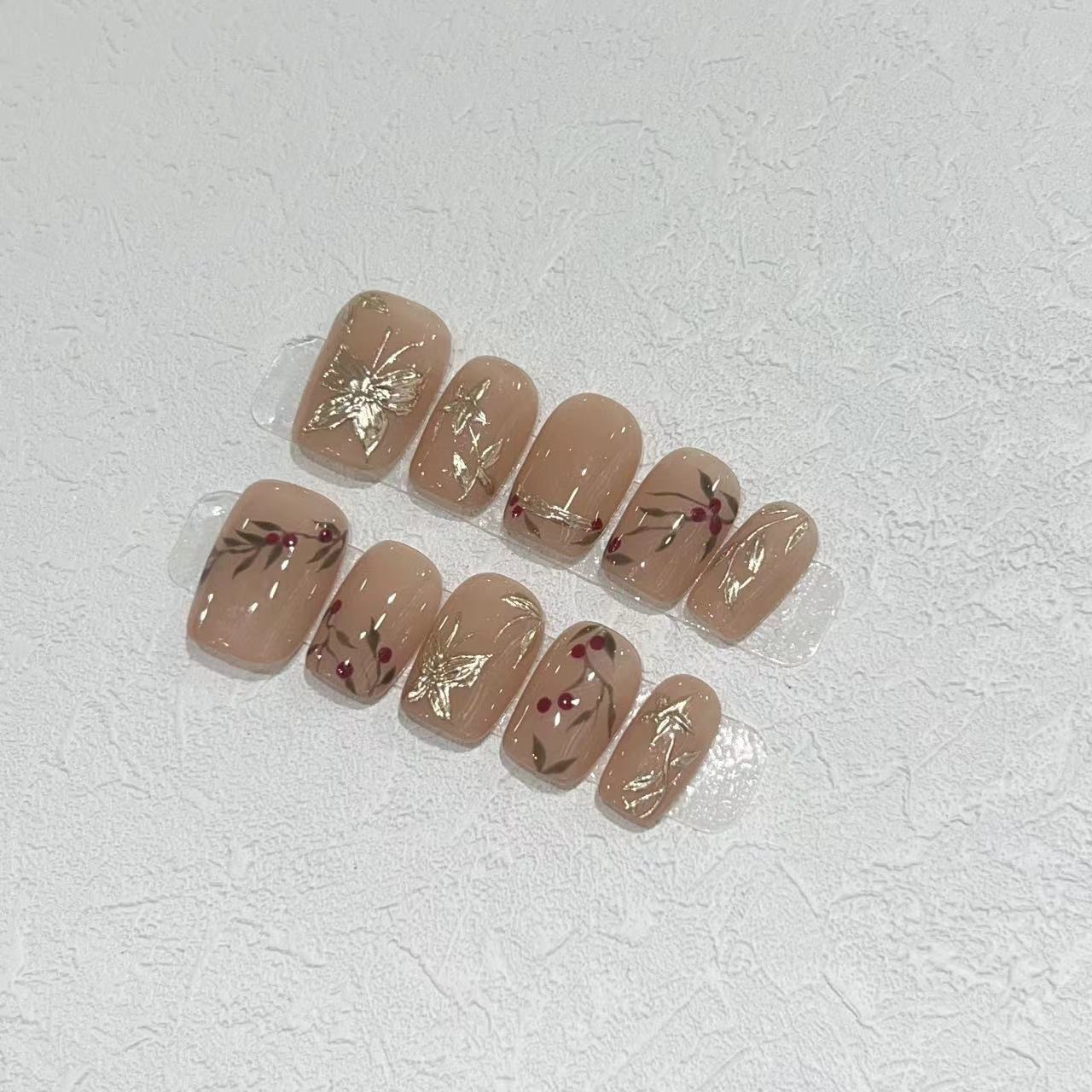 2024 primavera y verano nuevo uso hecho a mano pieza de uñas primavera estilo montaña espejo mágico pintado a mano mariposa lindo corto desmontable