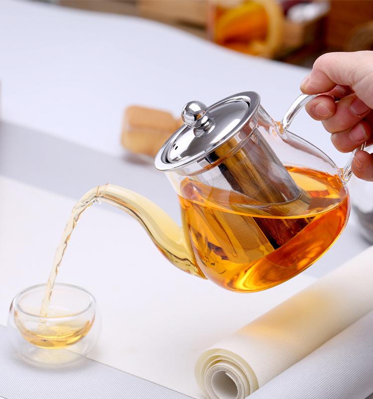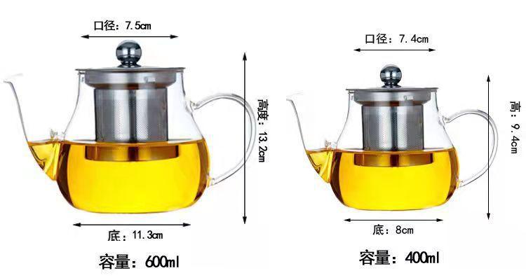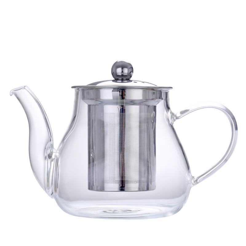 Tetera de vidrio de borosilicato de alta calidad con filtro de acero inoxidable, juego de té kung fu transparente para el hogar, tetera redonda, ventas al por mayor