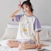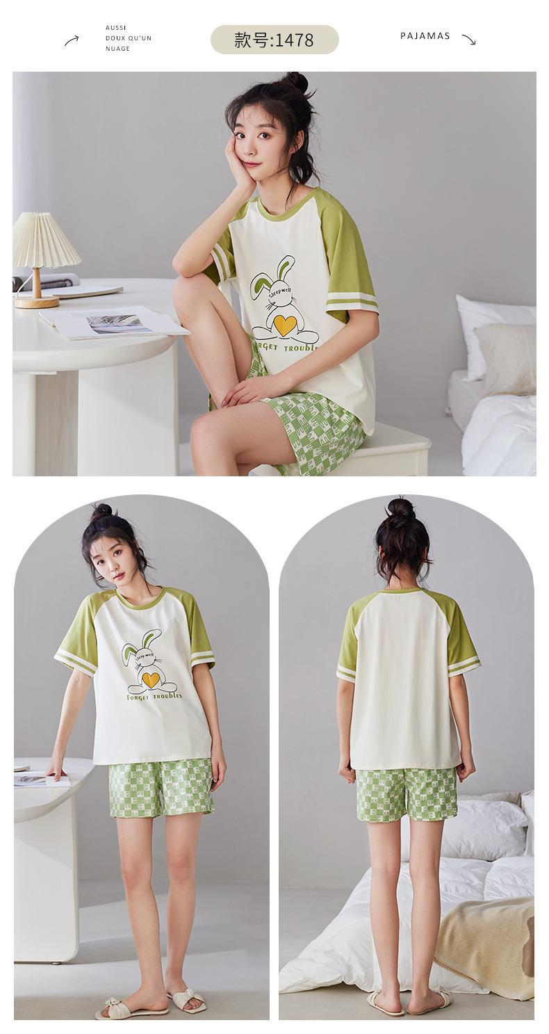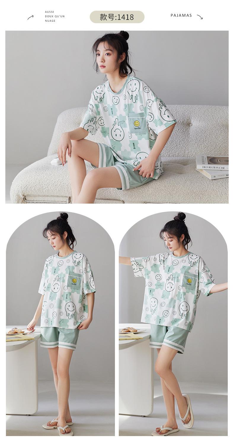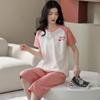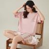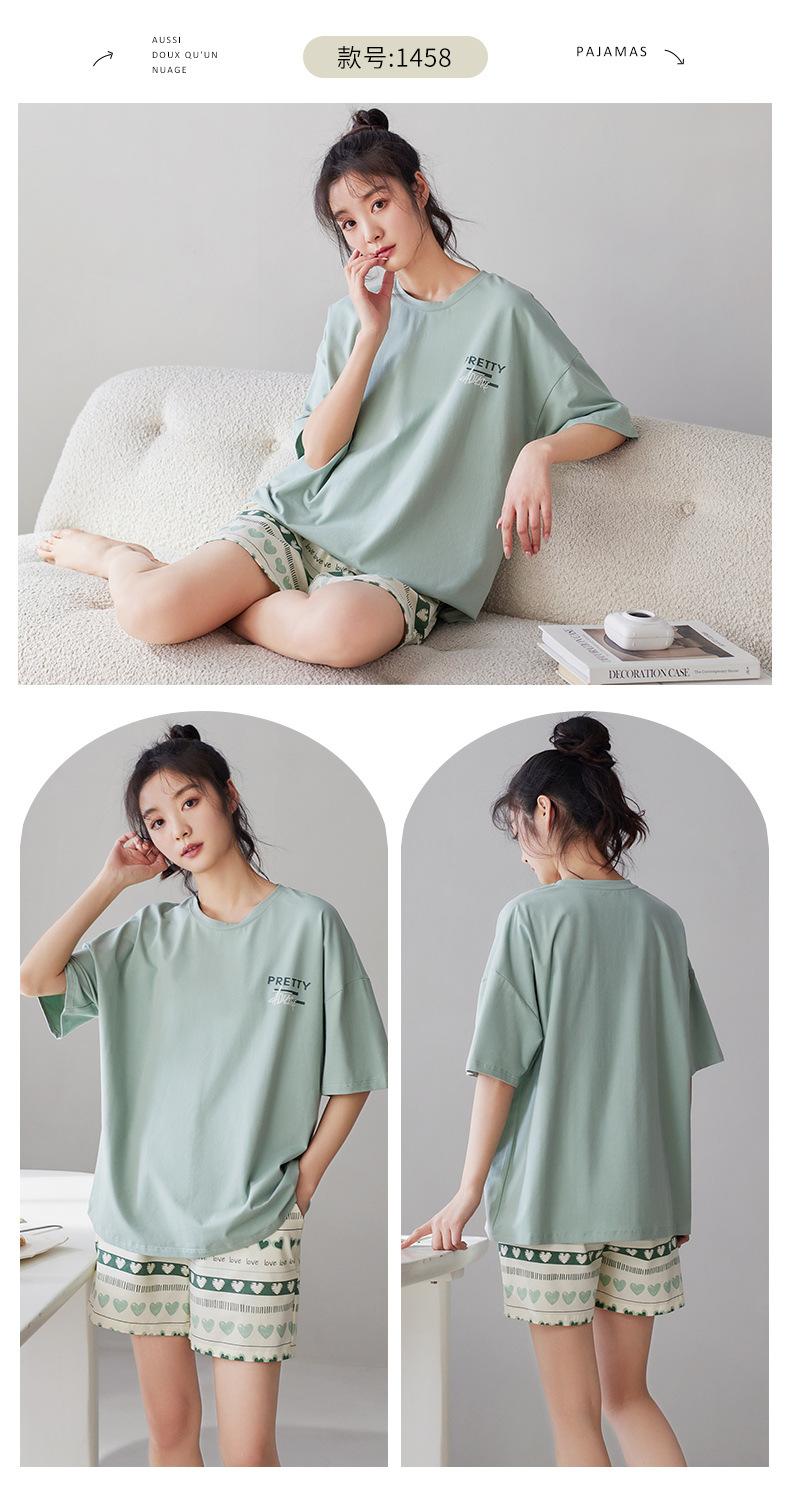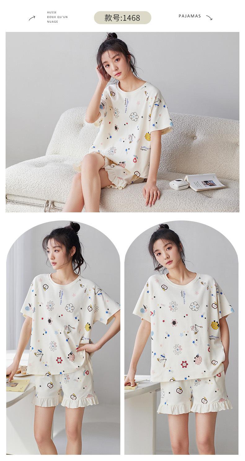 Pijama de algodón % para mujer, novedad de verano, cuello redondo, manga corta, pantalones cortos, ropa de abrigo informal para niña, ropa de casa fina