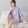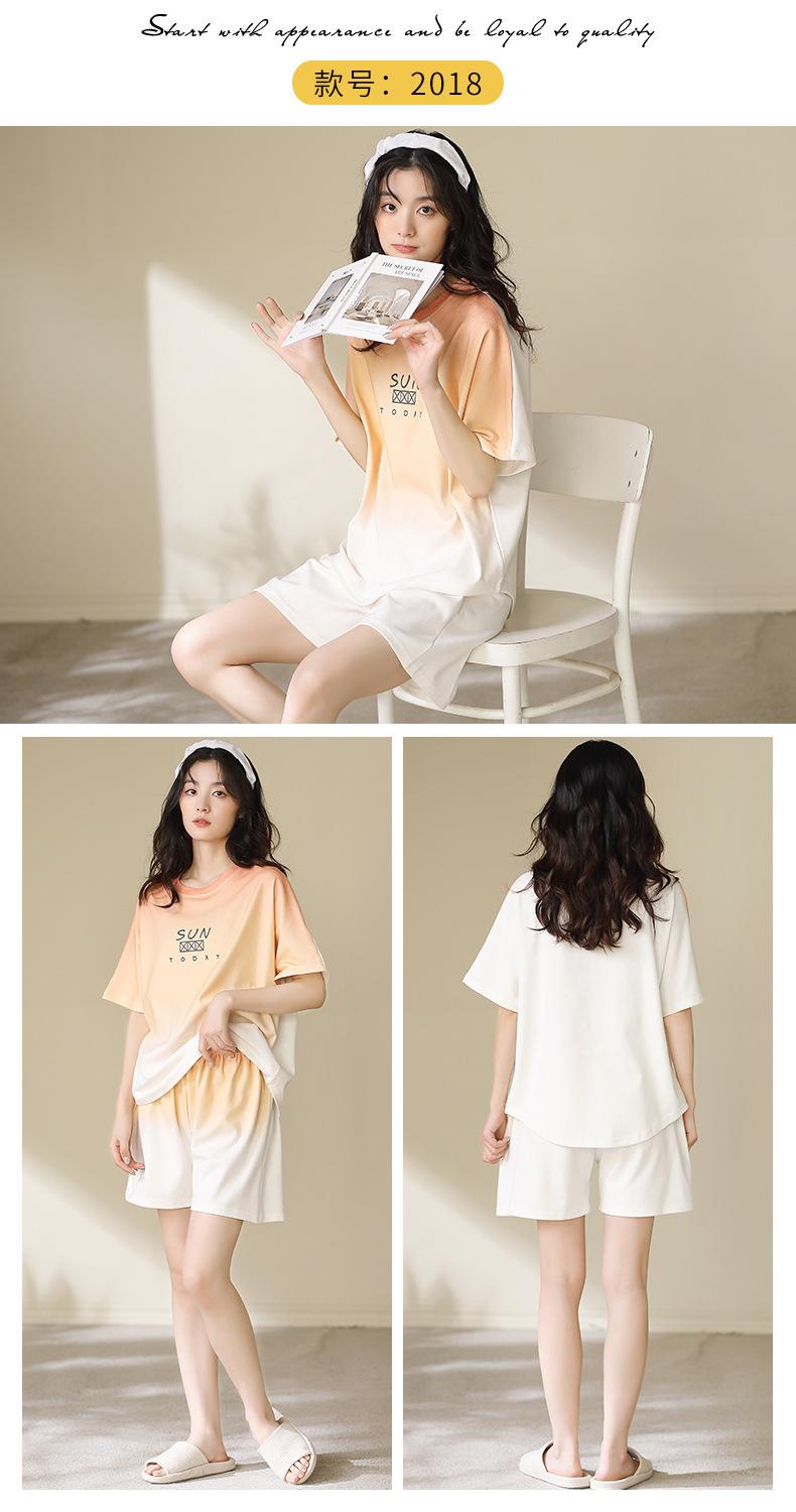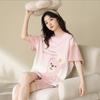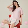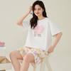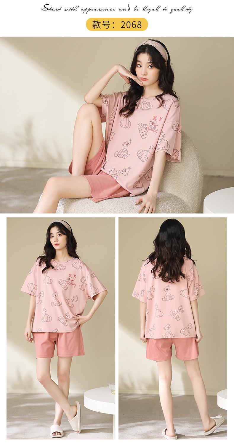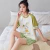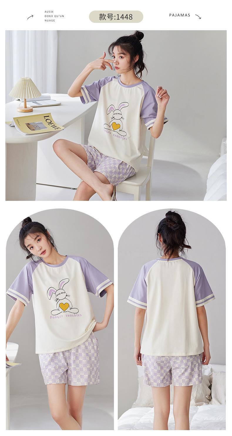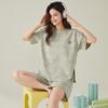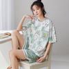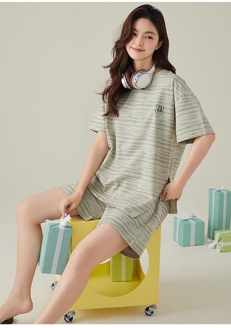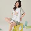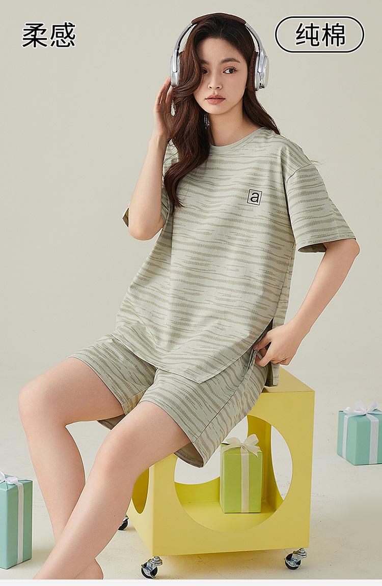 Pijama de algodón % para mujer, novedad de verano, cuello redondo, manga corta, pantalones cortos, ropa de abrigo informal para niña, ropa de casa fina