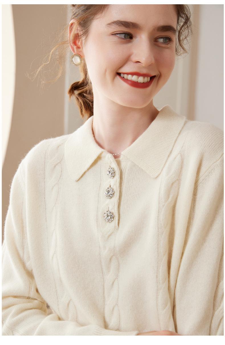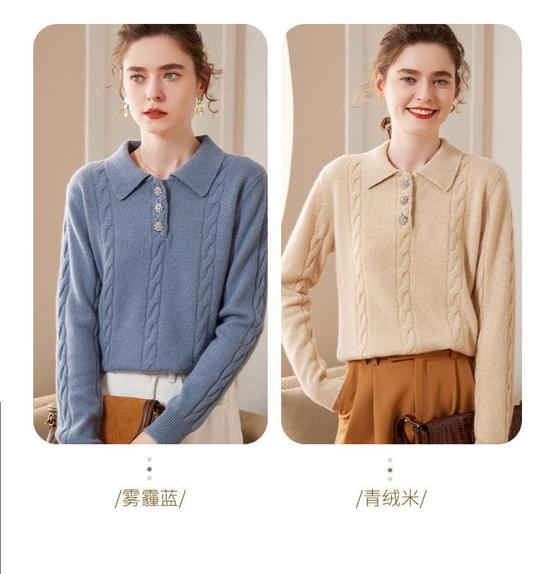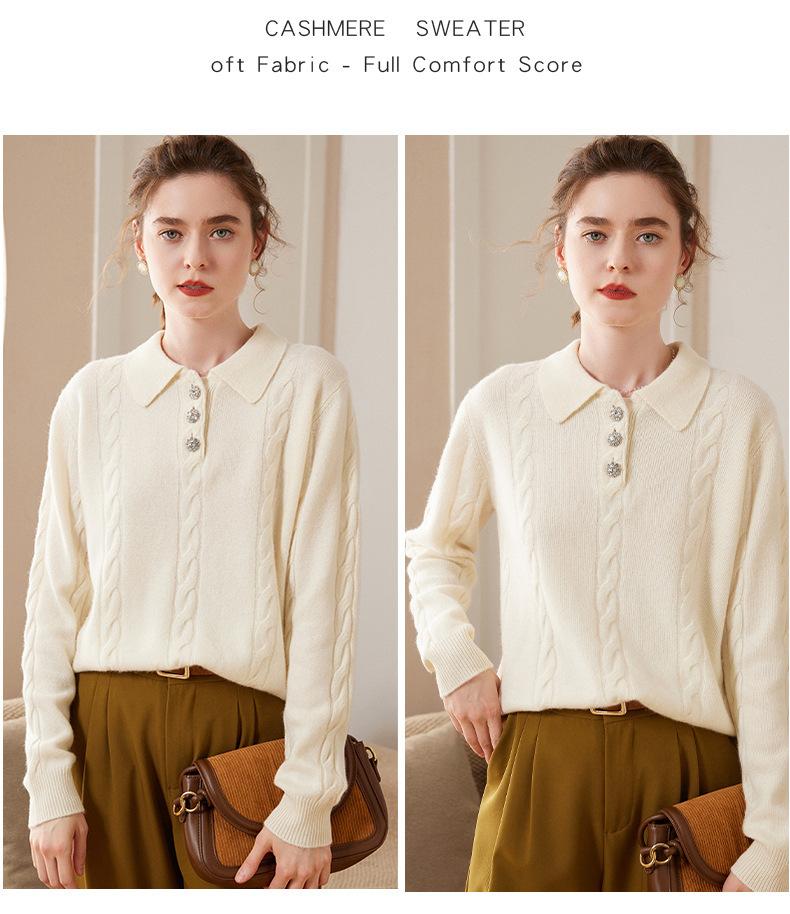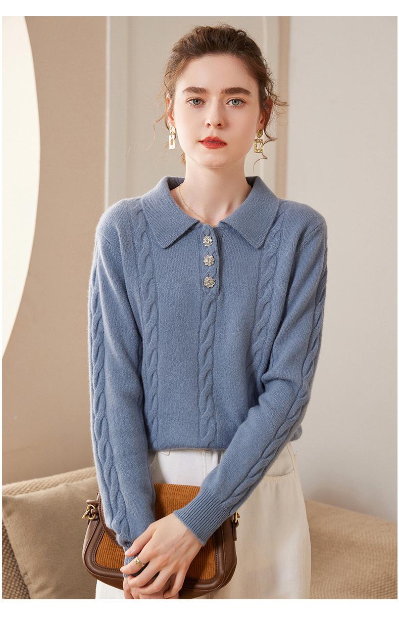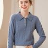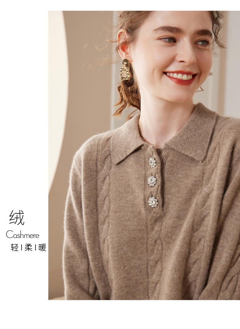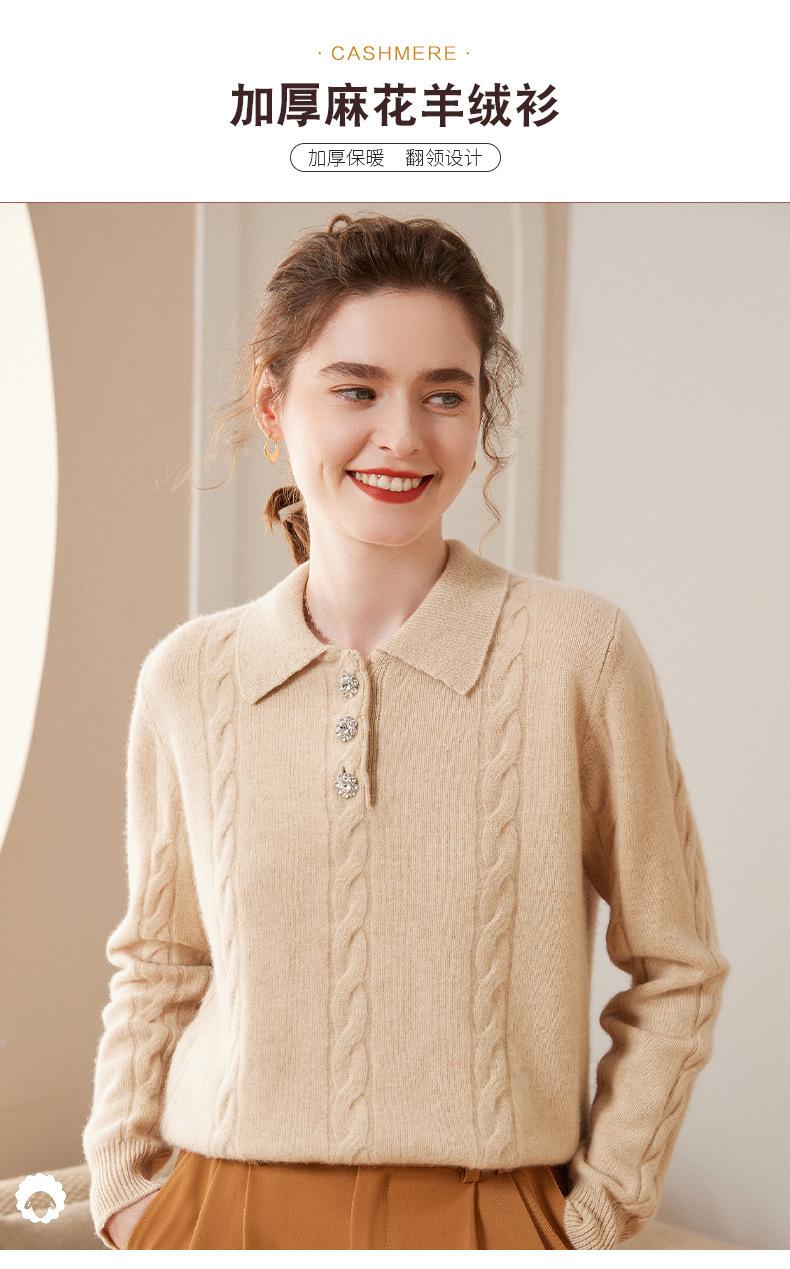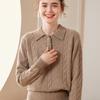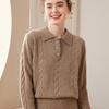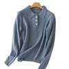 Suéter de cachemira con cuello polo para mujer, suéter holgado y grueso de manga larga, camisa de cachemira de punto combinable a la moda para otoño e invierno.