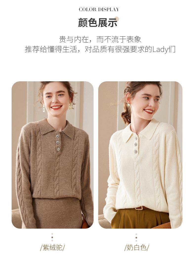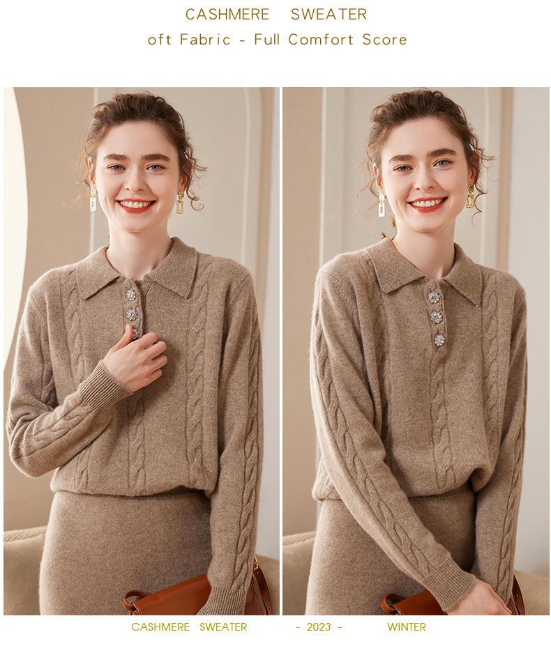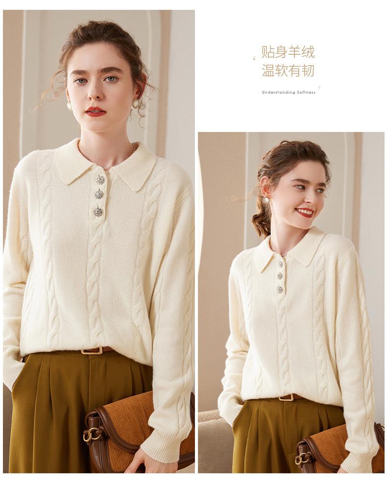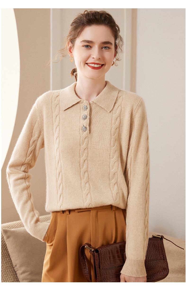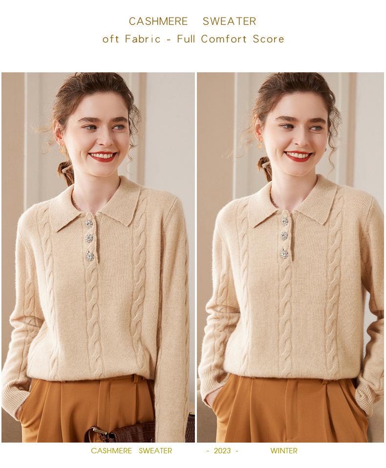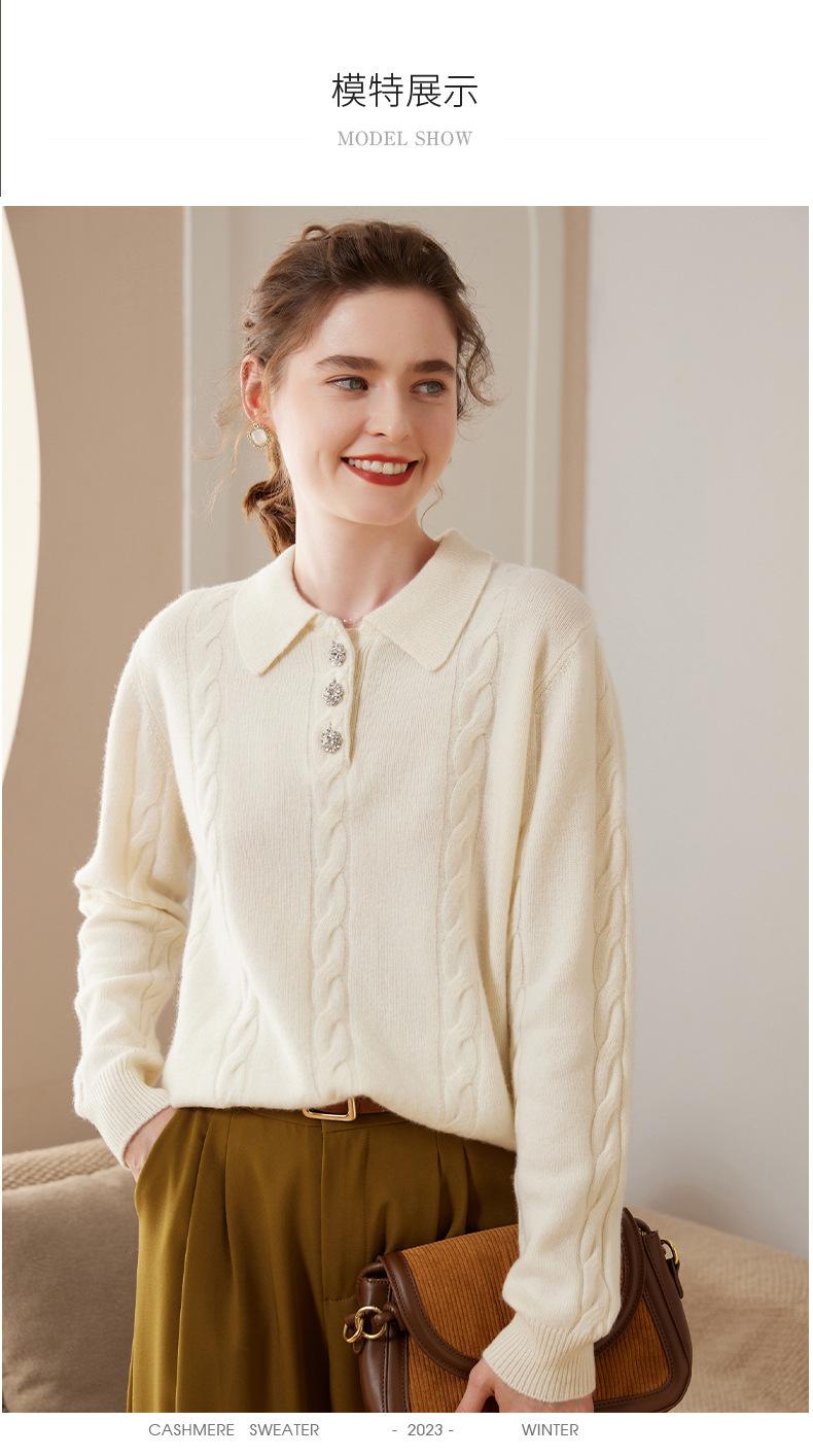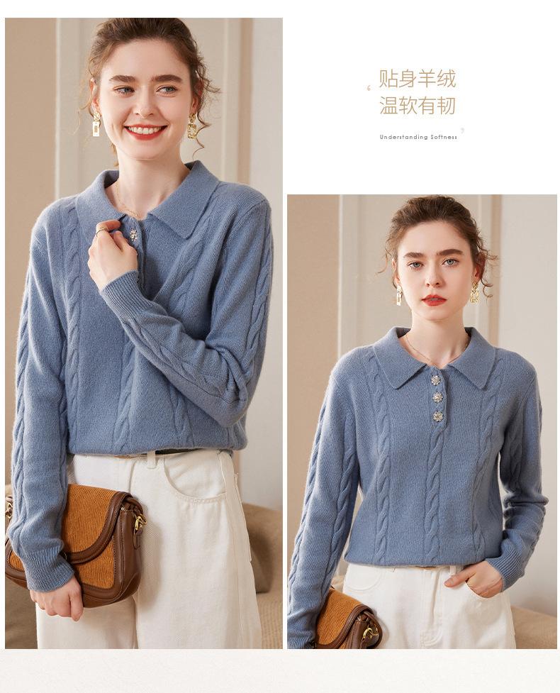 Suéter de cachemira con cuello polo para mujer, suéter holgado y grueso de manga larga, camisa de cachemira de punto combinable a la moda para otoño e invierno.