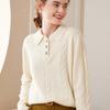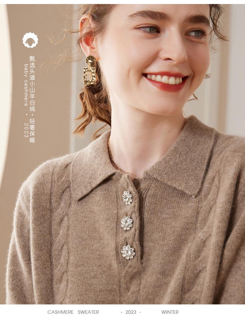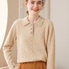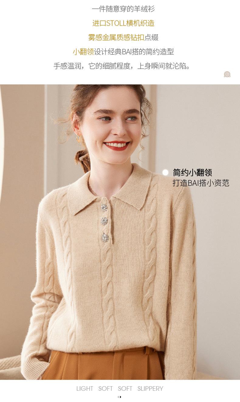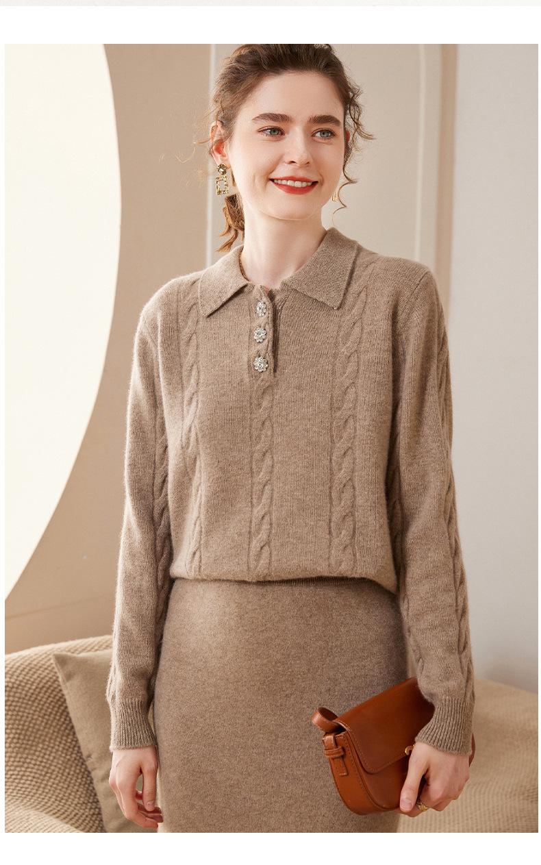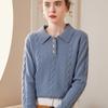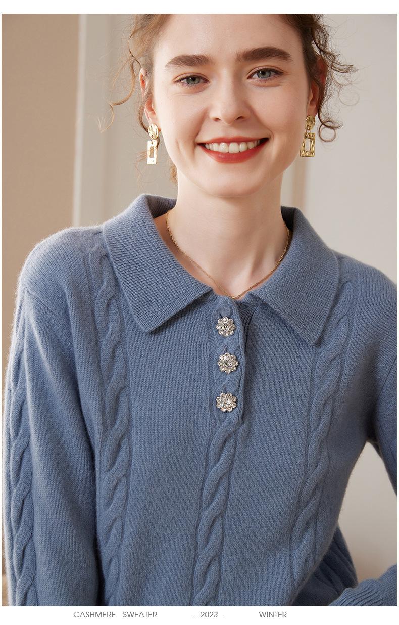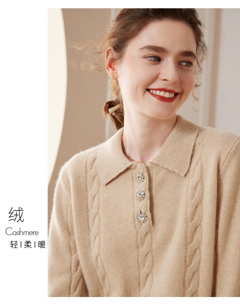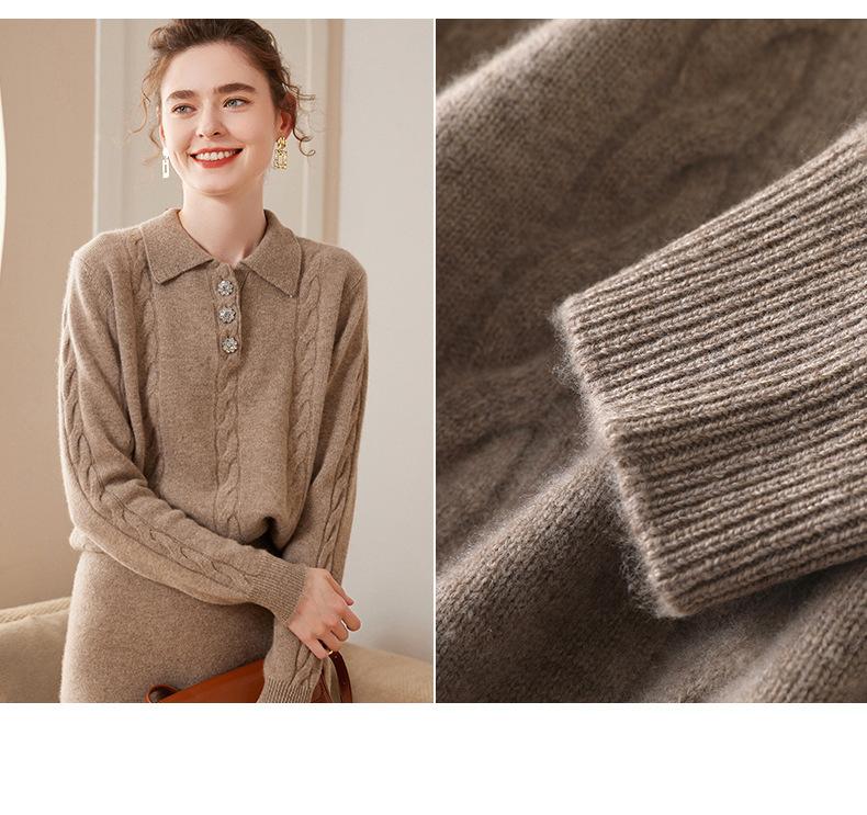 Suéter de cachemira con cuello polo para mujer, suéter holgado y grueso de manga larga, camisa de cachemira de punto combinable a la moda para otoño e invierno.