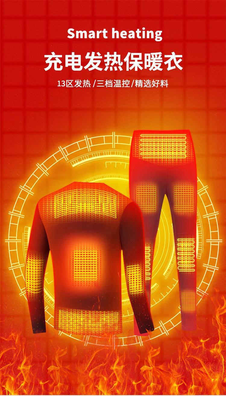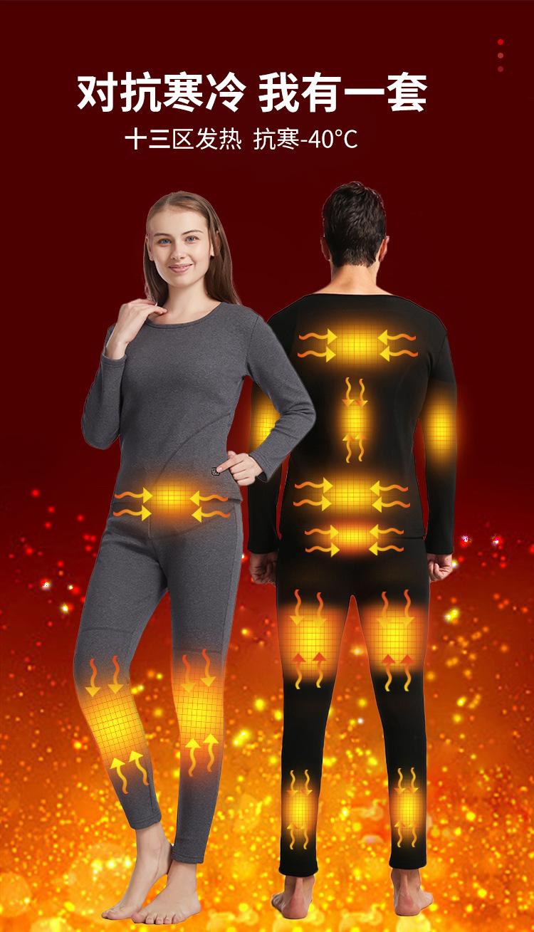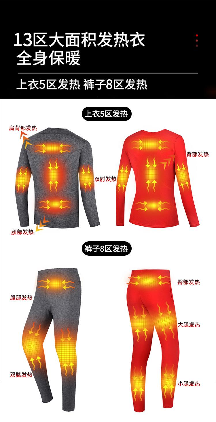 Ropa interior térmica eléctrica transfronteriza para hombre, otoño e invierno, traje térmico para mujer, ropa con calefacción inteligente de 13 áreas, pantalones hasta la rodilla