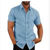 Camisa de lino para hombre, manga corta, botones, color liso, solapa, verano, oferta de Amazon eBay 2023