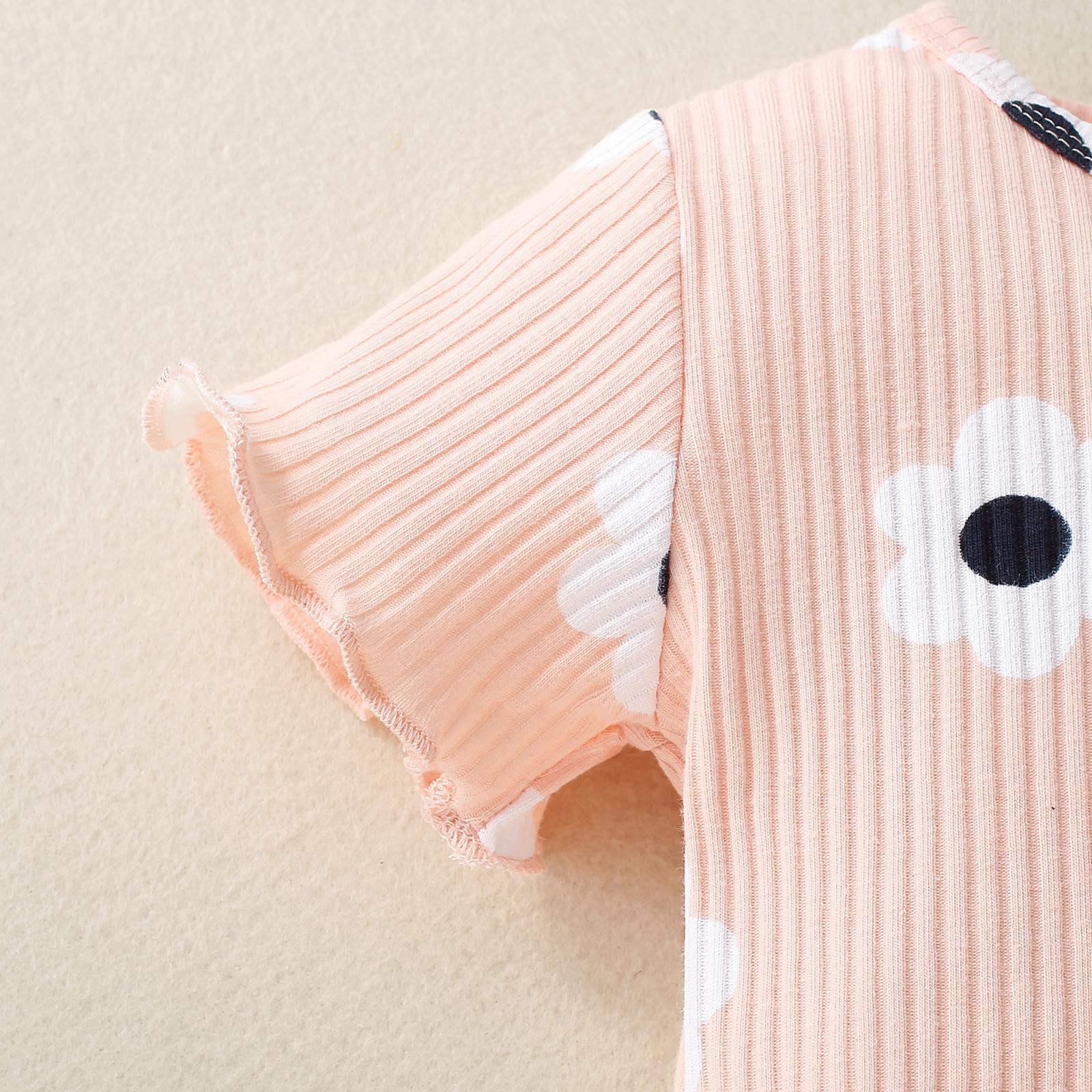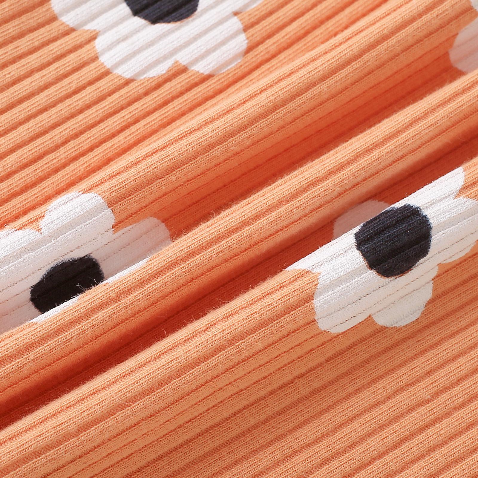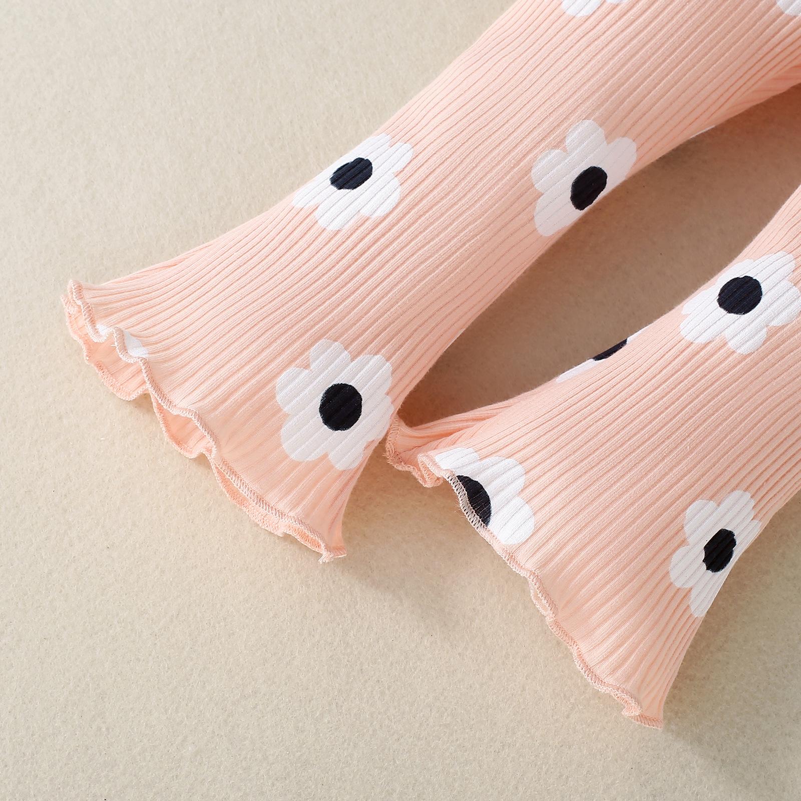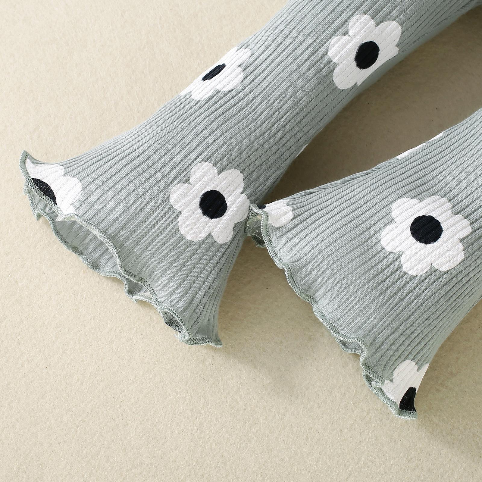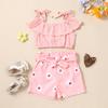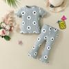 Transfronterizo Nuevo Verano Niña Flor Pequeña Hoyo Manga Corta Trompeta Traje de Pantalón Verano Ropa de Casa