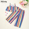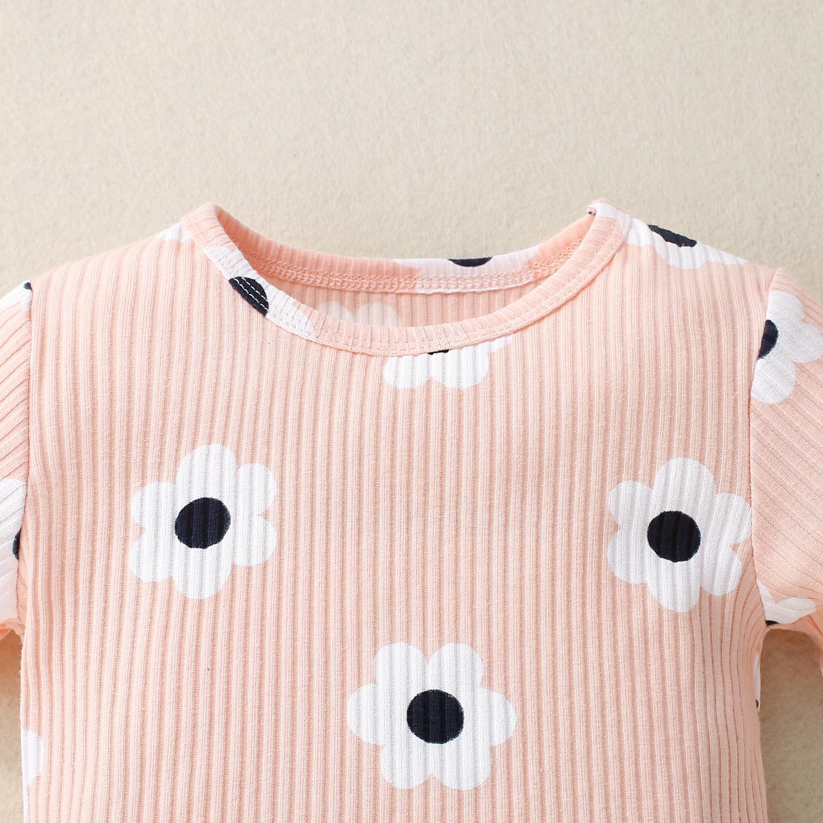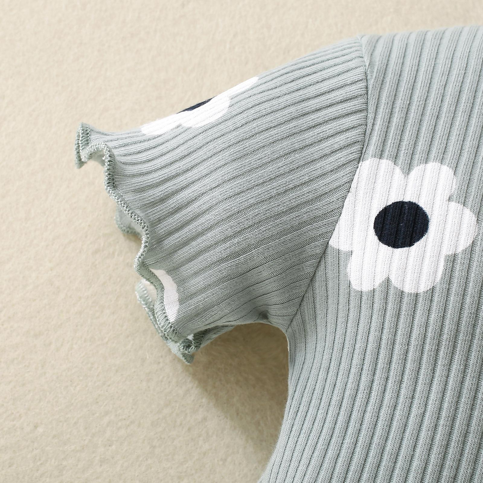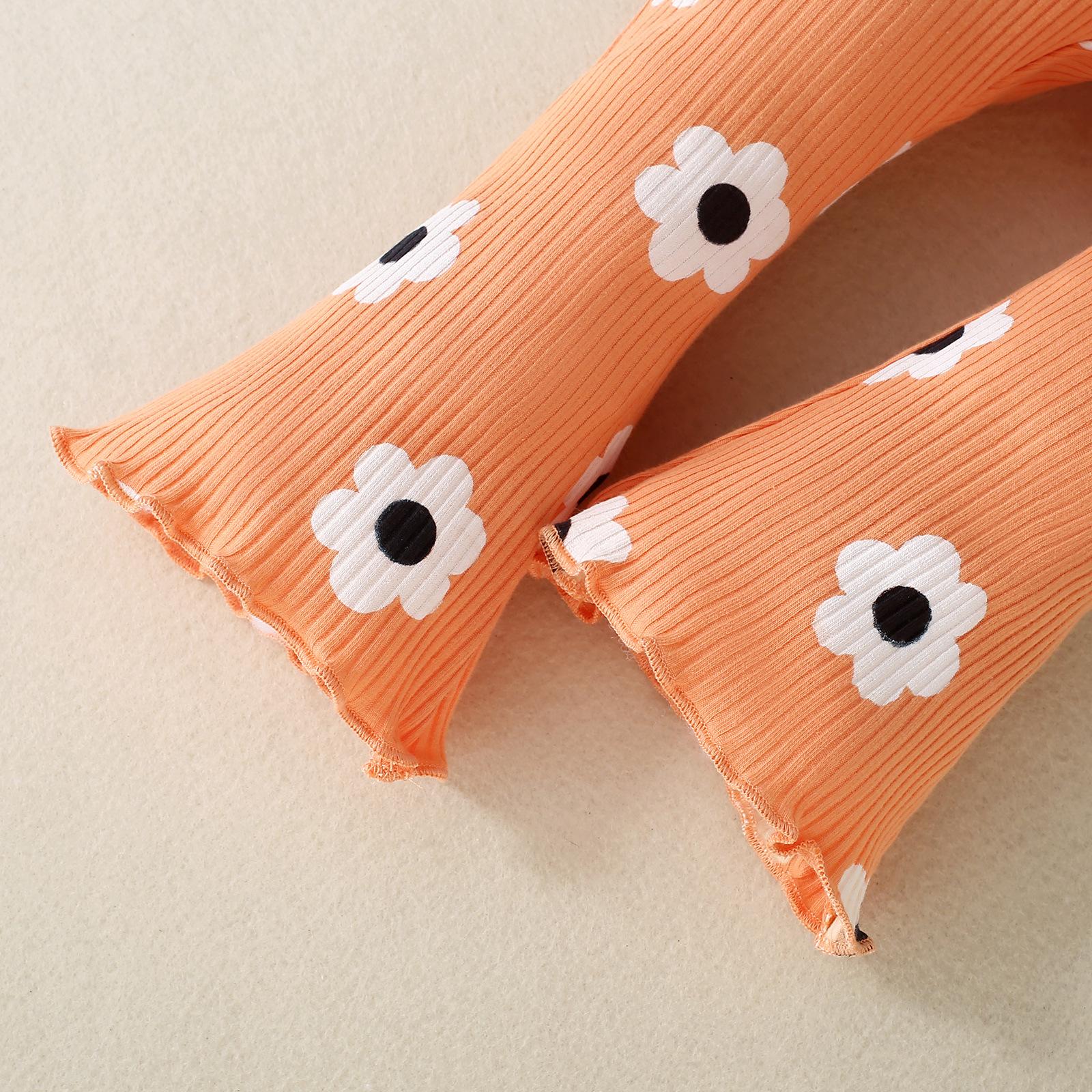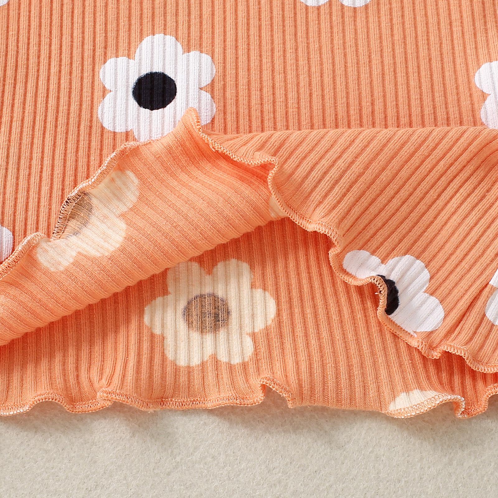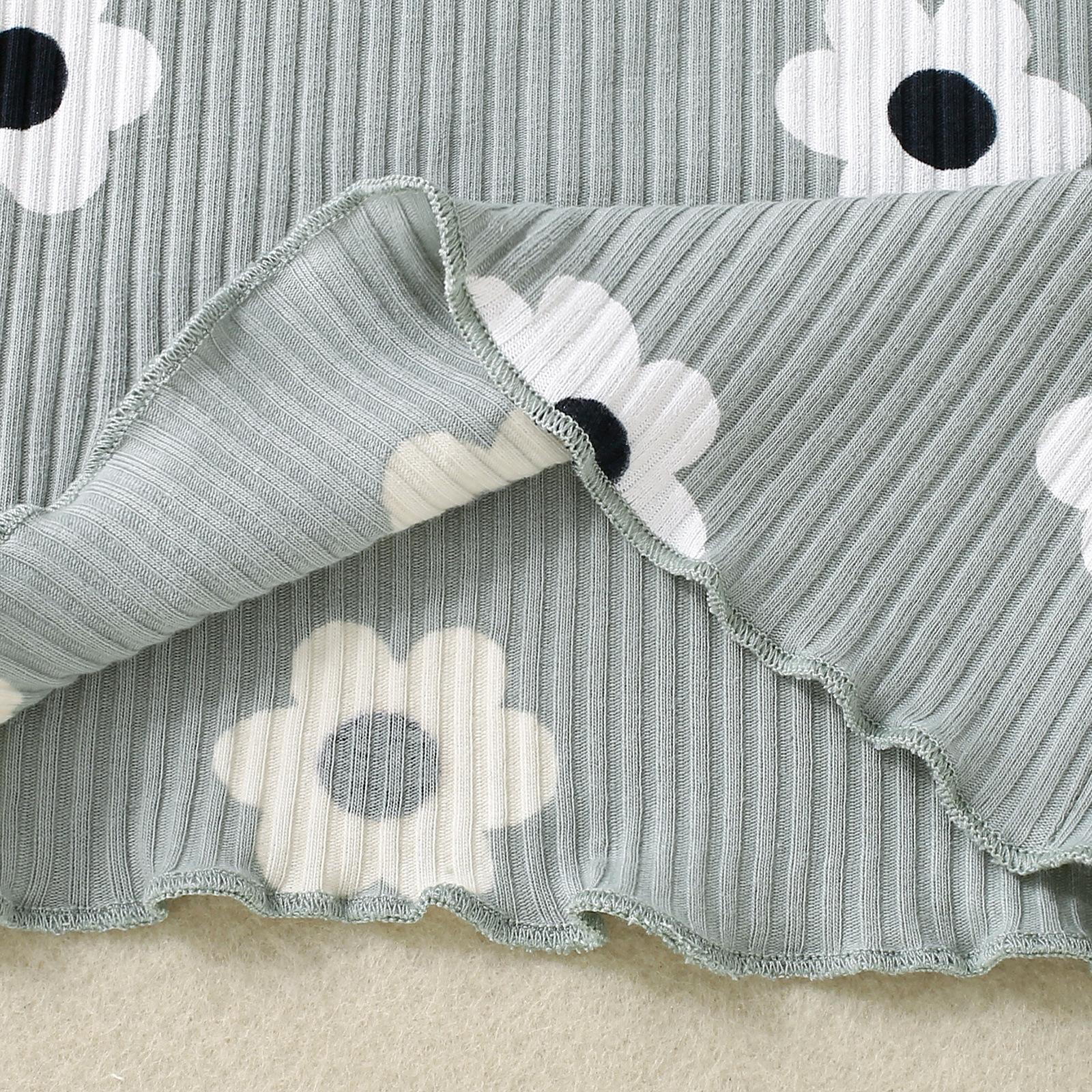 Transfronterizo Nuevo Verano Niña Flor Pequeña Hoyo Manga Corta Trompeta Traje de Pantalón Verano Ropa de Casa