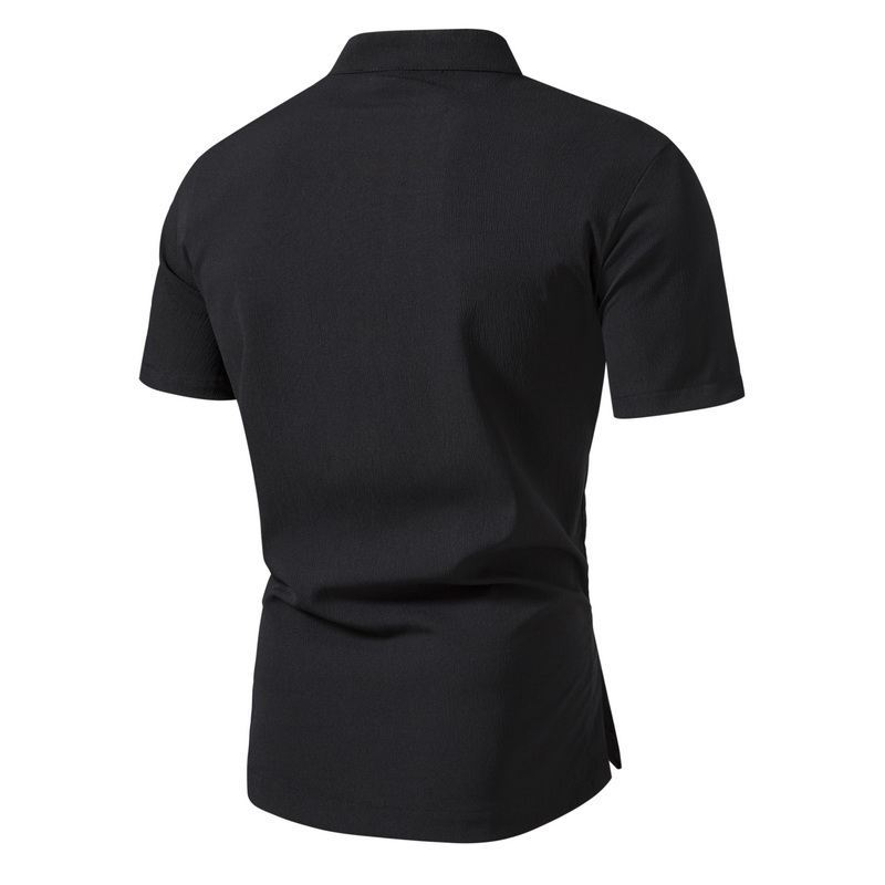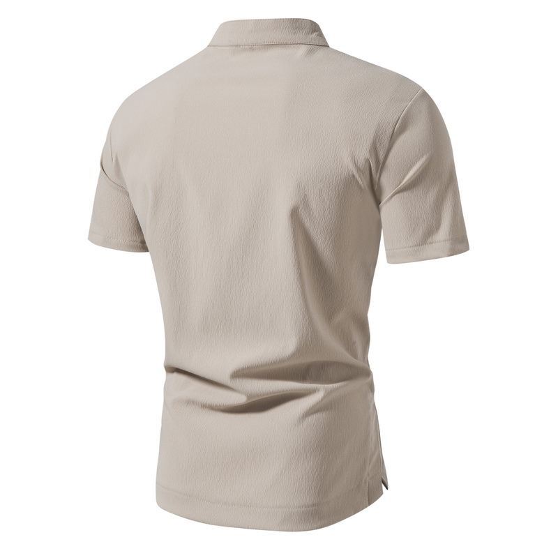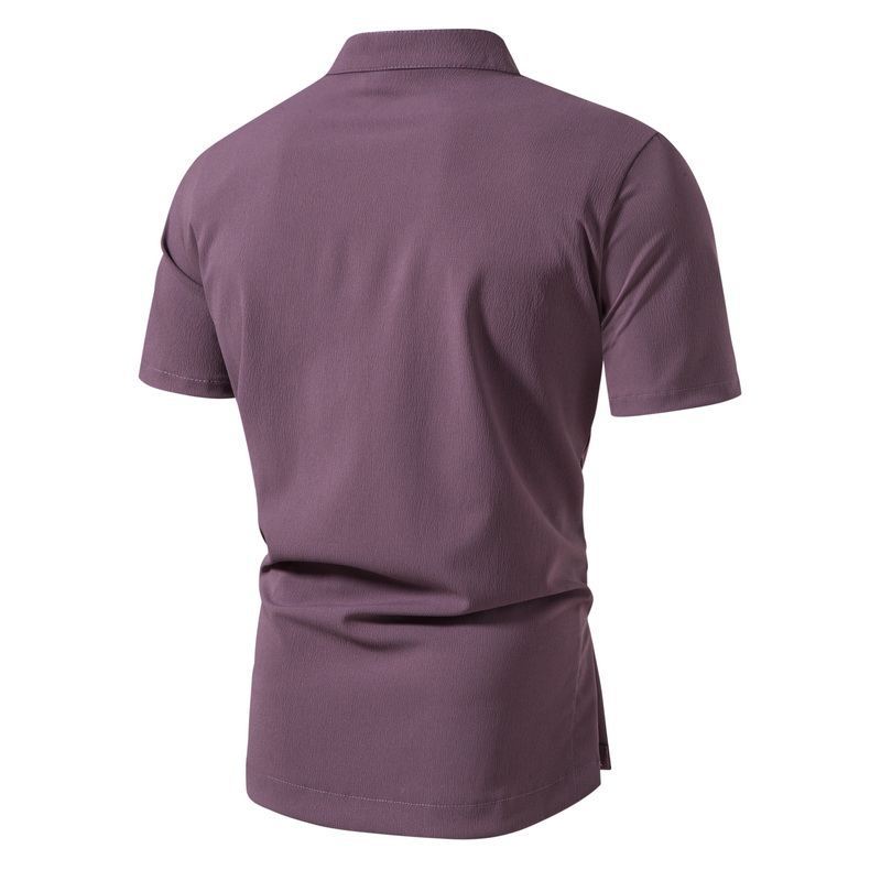 Ropa de Verano para Hombre Transfronteriza Camisa de Manga Corta de Color Sólido con Cuello Mao para Hombre Camisa Jersey para Hombre Top Slim de Manga Corta para Hombre
