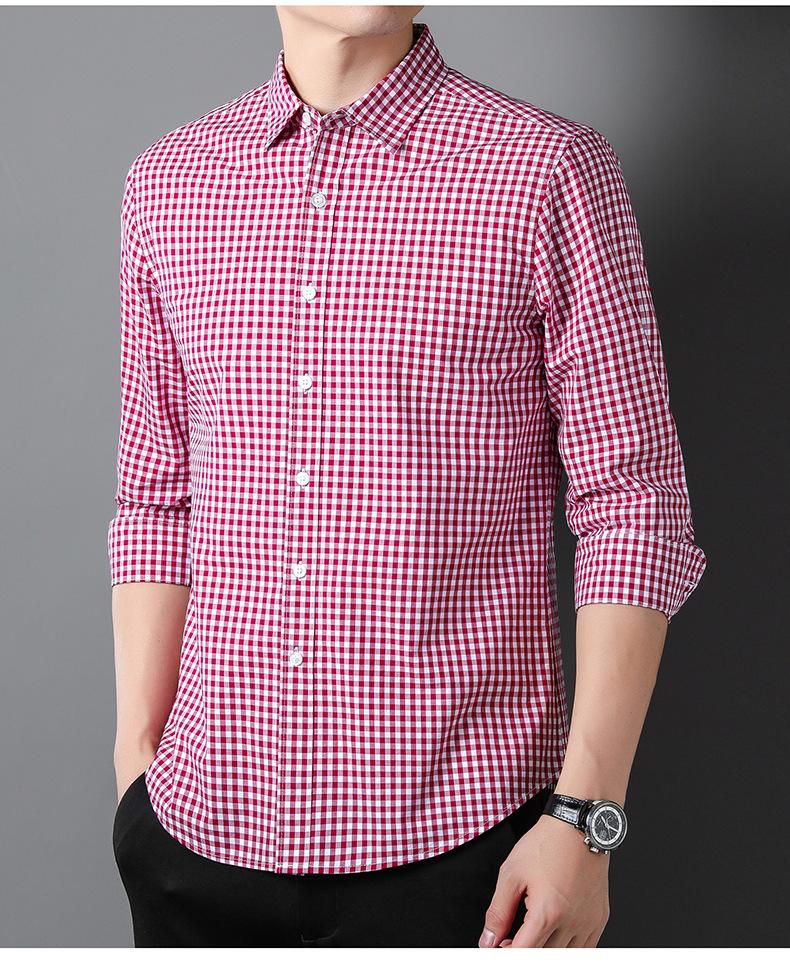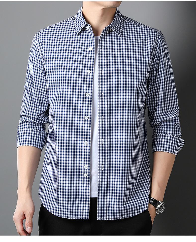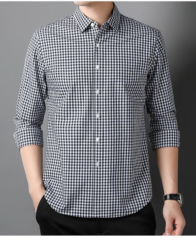 Nueva Camisa Casual de Negocios a Cuadros para Hombre Primavera y Otoño Camisa Casual con Solapa de Negocios 5F8C0Y5