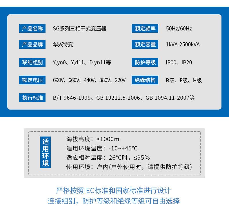 Los transformadores trifásicos tipo seco de la serie SG, fabricados por nuestra empresa, se utilizan principalmente para el control y la alimentación de diversos equipos eléctricos completos de alta y baja tensión, equipos de importación y exportación, máquinas herramienta de precisión, SAI, equipos de galvanoplastia, iluminación, calefacción, comunicaciones, industria química y otros sectores. Ofrecen las ventajas de su pequeño tamaño, peso ligero, fácil mantenimiento y funcionamiento fiable. Su diseño y producción se realizan estrictamente de conformidad con las normas internacionales IEC y las normas nacionales GB pertinentes.