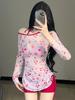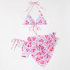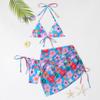 Traje de baño ajustado con estampado floral europeo y americano 2024, nuevo bikini dividido de tres piezas, traje de baño de alta gama sin espalda de aguas termales