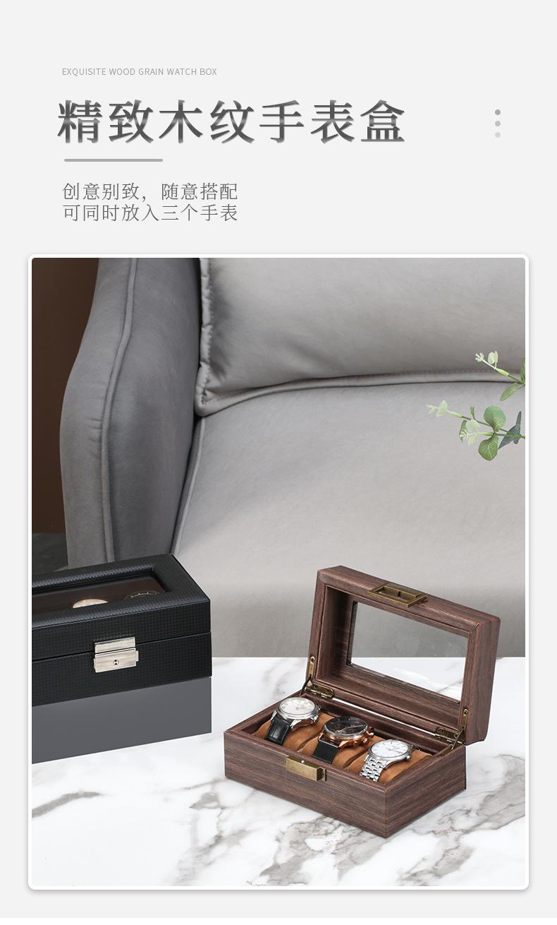 [Estilo]: Caja de reloj de fibra de carbono (veta de madera) de 3 posiciones