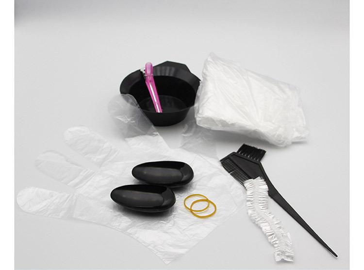 Suministro directo de fábrica: herramientas para teñir el cabello, traje, chal para teñir el cabello, tratamiento para el cabello, cuenco, orejeras, cepillo, clip, gorro de ducha, guantes, juego de 7 piezas
