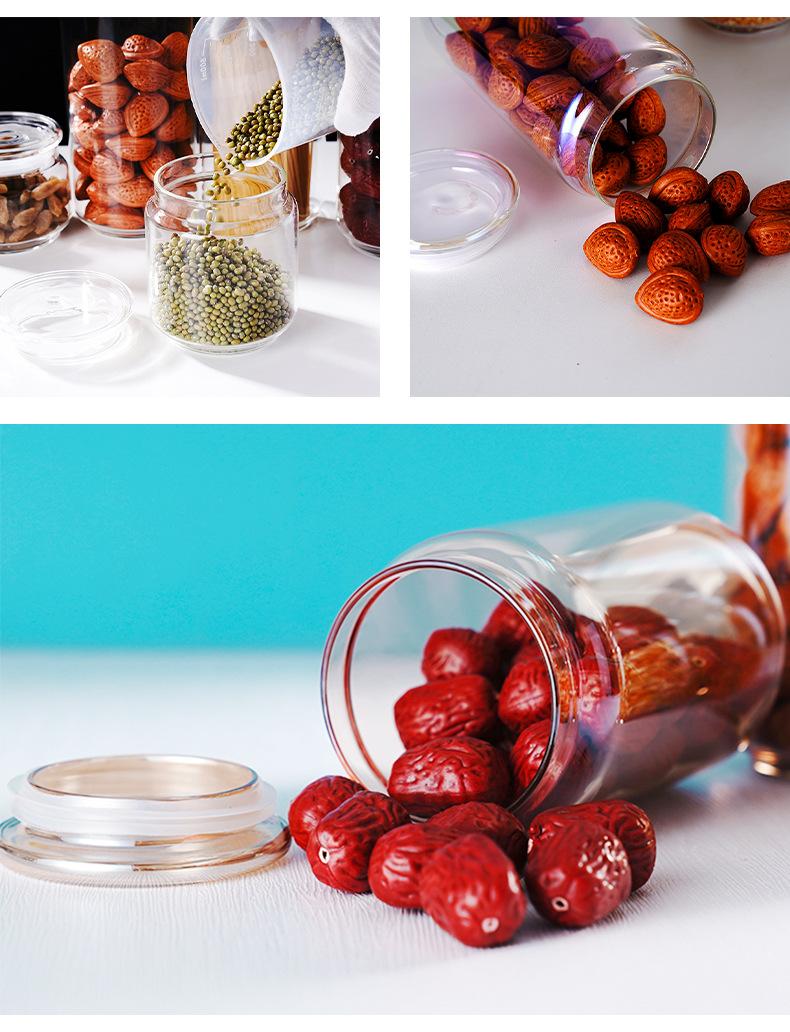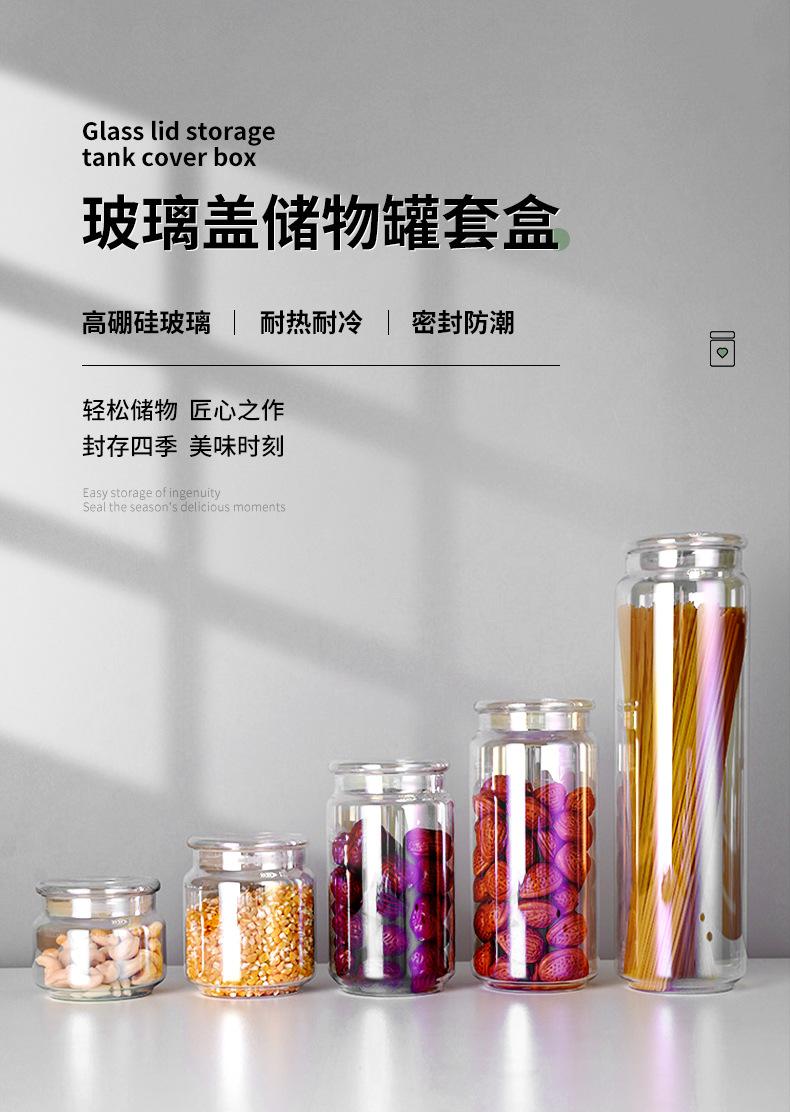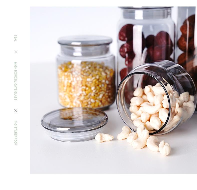 Juego de tapas de vidrio al por mayor, caja de 90 de diámetro, juego de cinco piezas, frasco sellado, botella de vidrio de borosilicato de alta calidad, frasco para almacenar frutas secas en la cocina.
