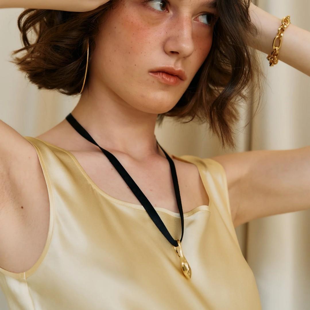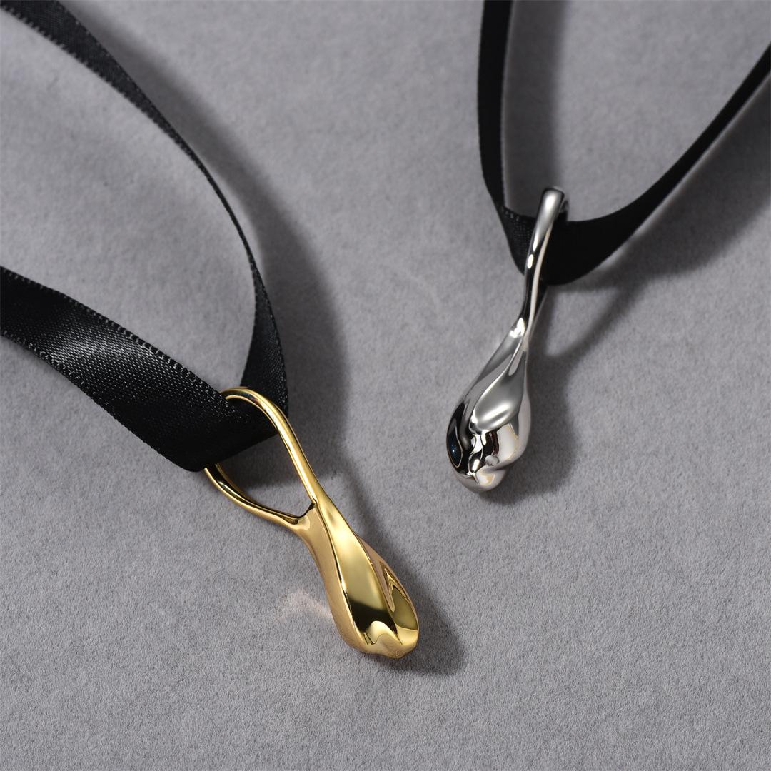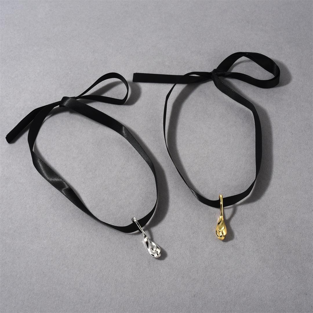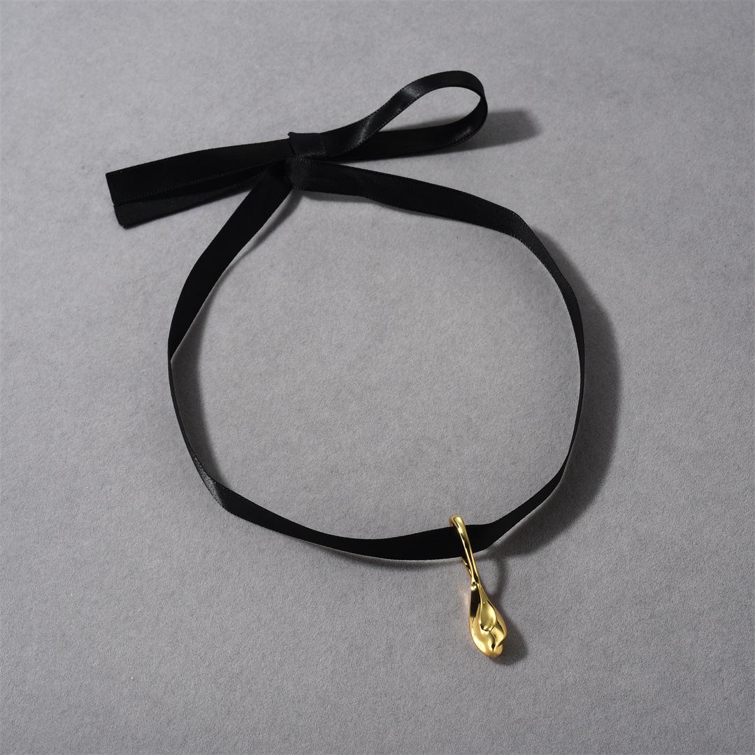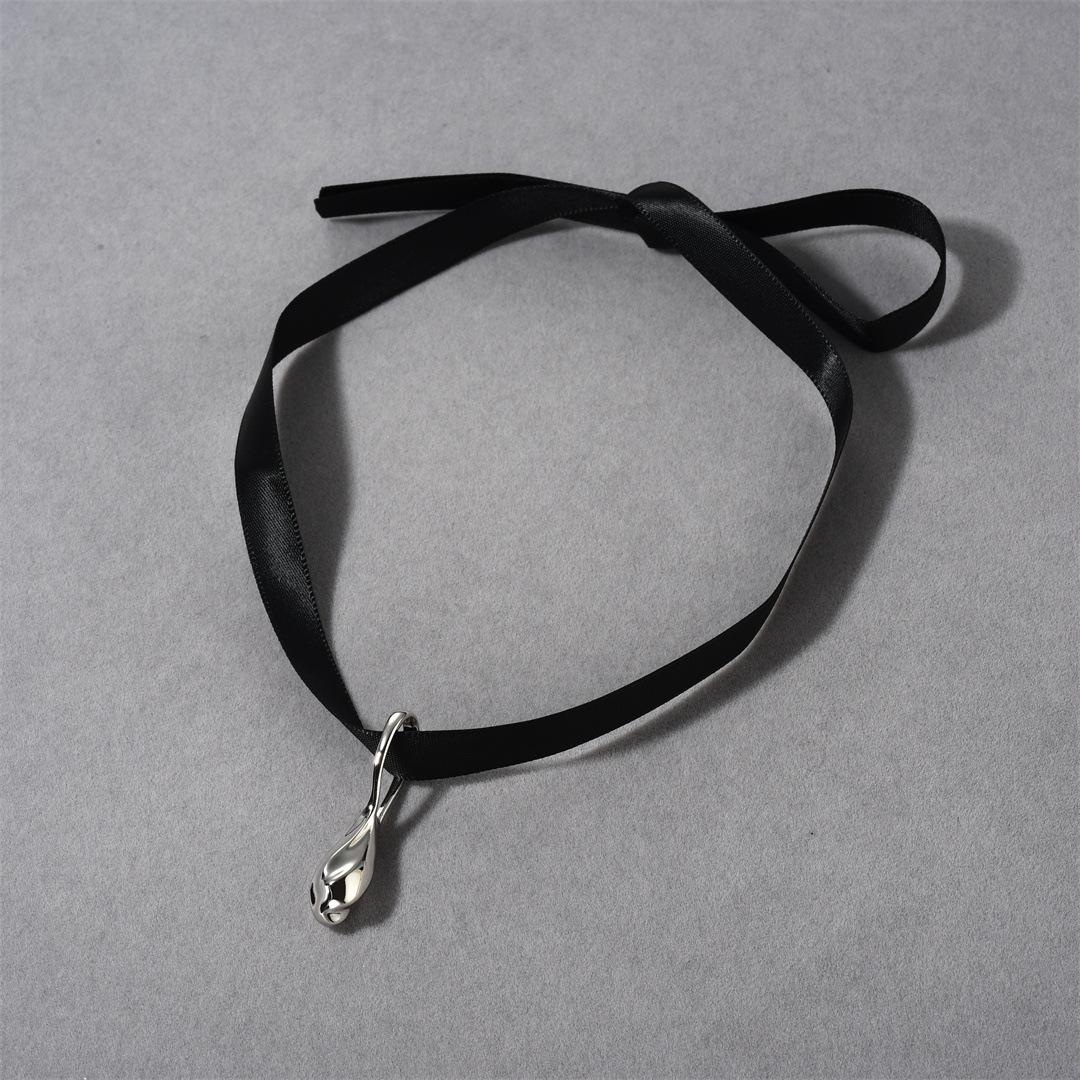 Collar con correa de cuello negra, cadena de collar de lujo ligera para mujer, collar de nicho retro de alta gama, cadena de collar con colgante moderno, accesorios para el cuello, collar