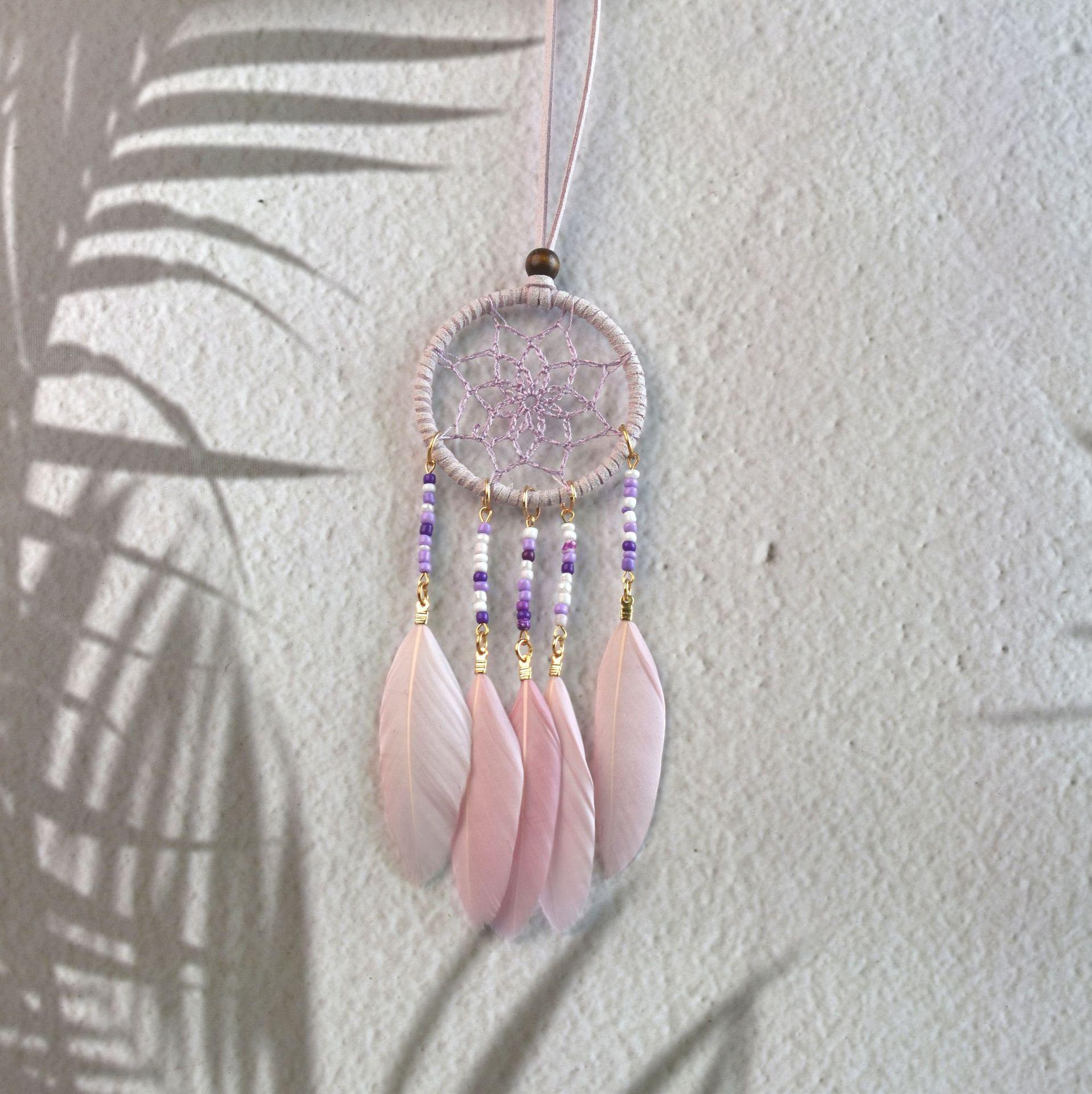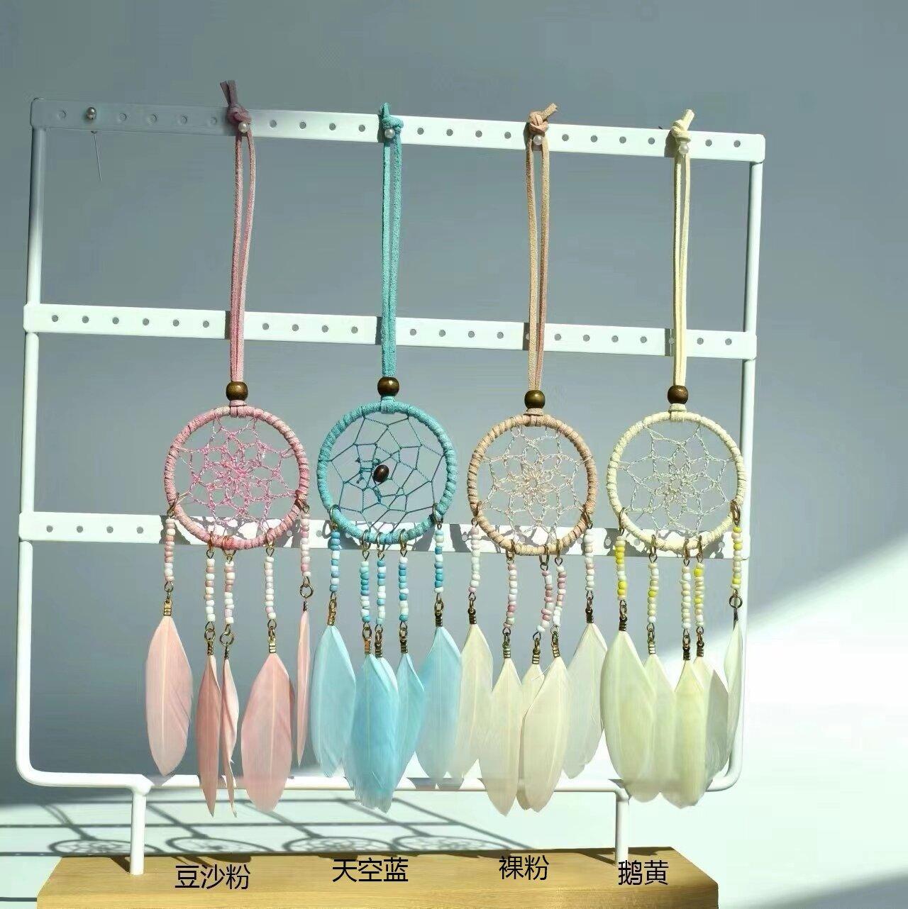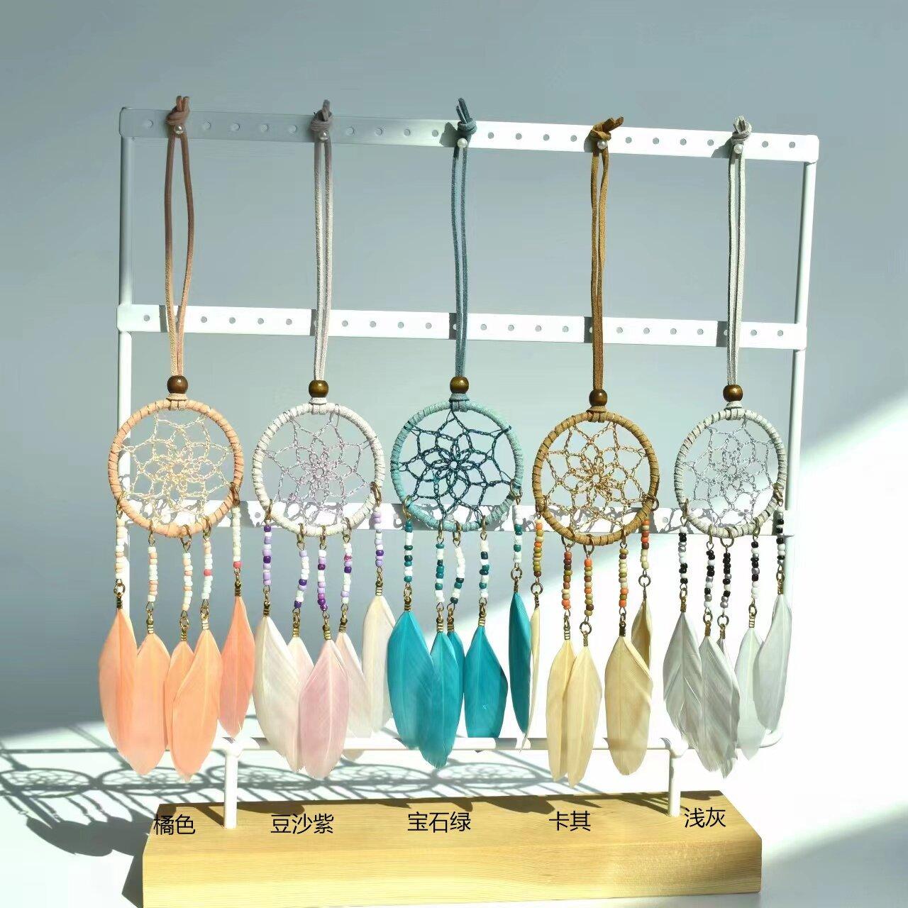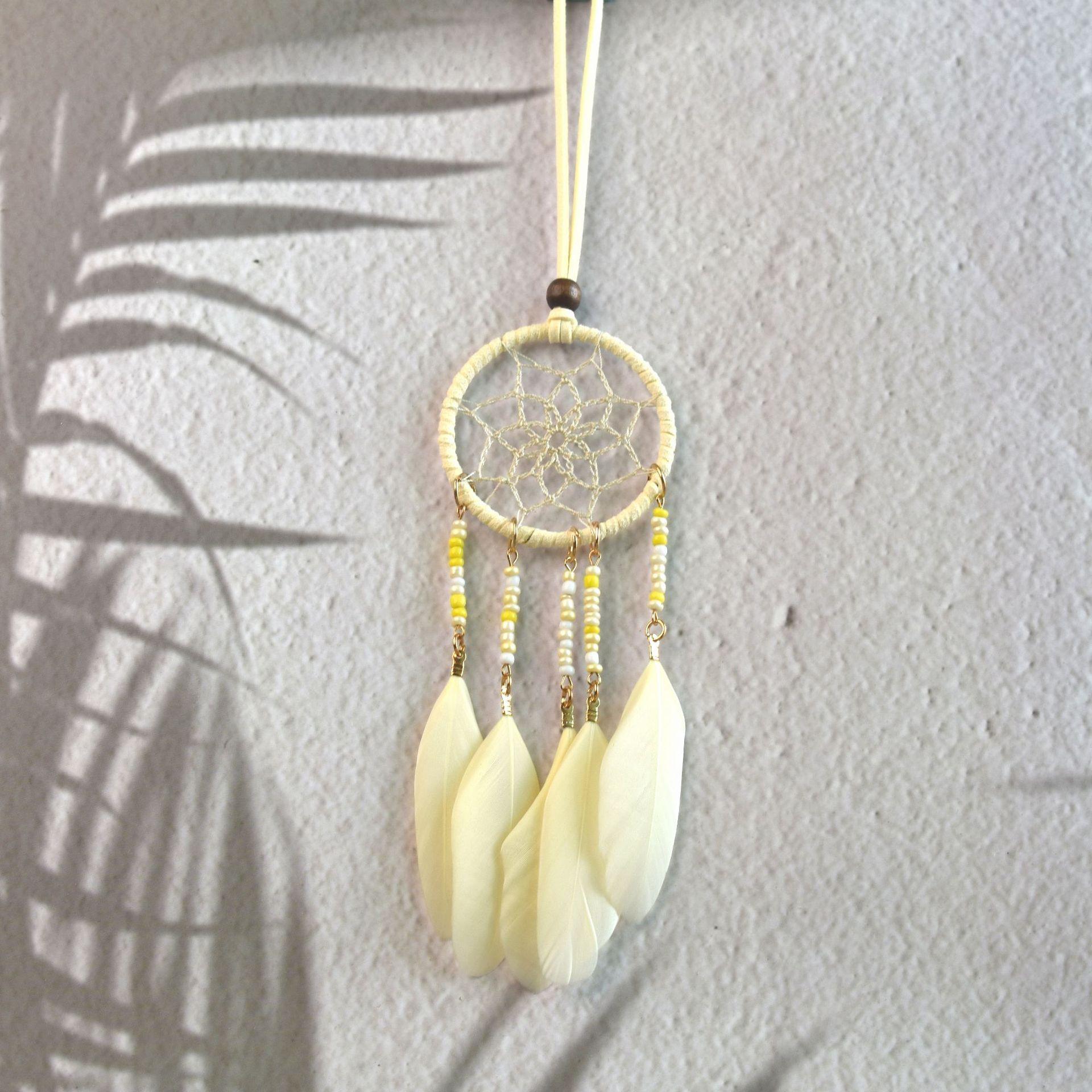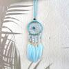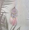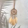 Material: Atrapasueños tejido a mano, plumas, cuentas de arroz,