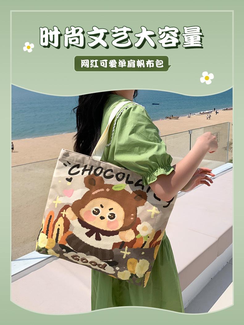 Bolso de Lona para Mujer 2025 Nuevo Bolso de Hombro de Gran Capacidad Bolso Tote Estilo Coreano Casual Bolso de Clase para Estudiantes Venta al por Mayor