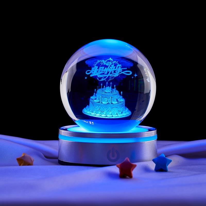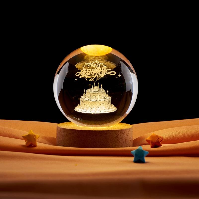 Compra Pastel de Cumpleaños Esfera de Cristal con Grabado Láser 3D Interno Luz Cálida Luz Nocturna Curativa para Regalo de Cumpleaños de Novia al por mayor en Joom.pro