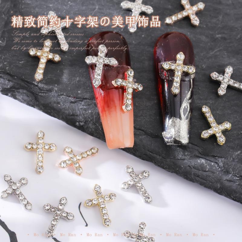 Compra Joyería de aleación de diamantes de imitación con forma de cruz de uñas popular transfronteriza, súper brillante, retro, de plata, tejida a ganchillo, joyería de diamantes para uñas al por mayor al por mayor en Joom.pro
