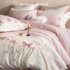 Juego de Cama de Verano de Algodón Puro Estilo Ins de Cuatro Piezas Algodón Transpirable de Alta Gama Ropa de Cama Popular Funda Nórdica Sábanas Juego de Tres Piezas