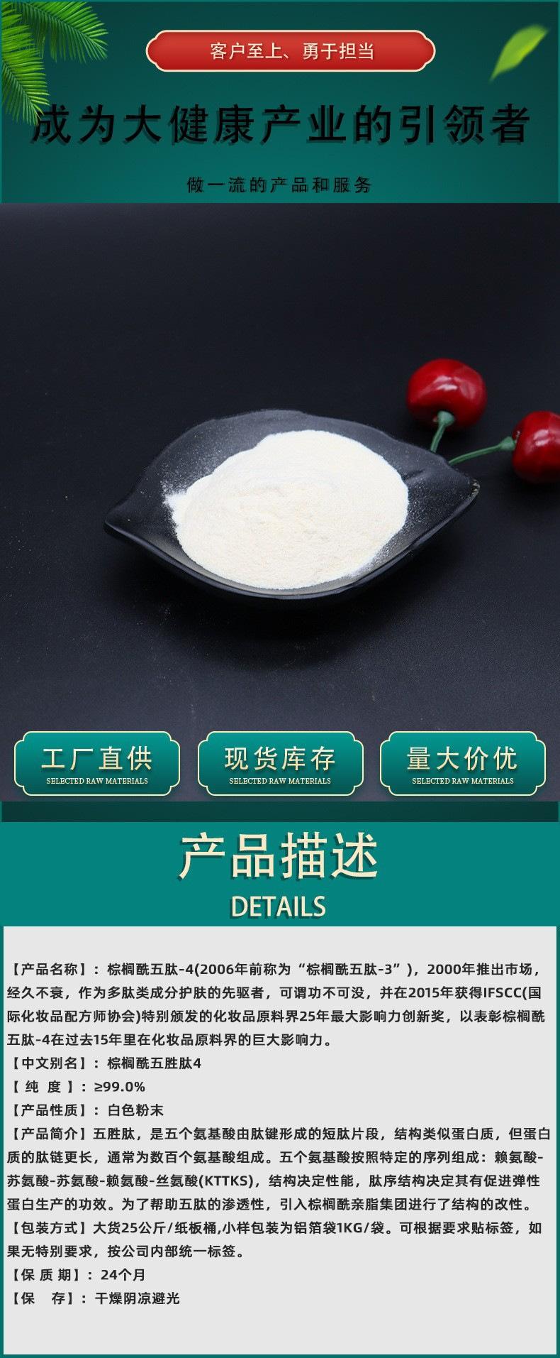 Palmitil pentapéptido-4 (99 % de madera), péptido biológico de cinco péptidos a base de M, grado cosmético, 1 g/bolsa, envío gratuito