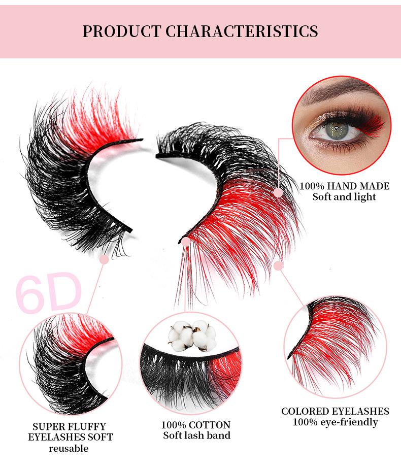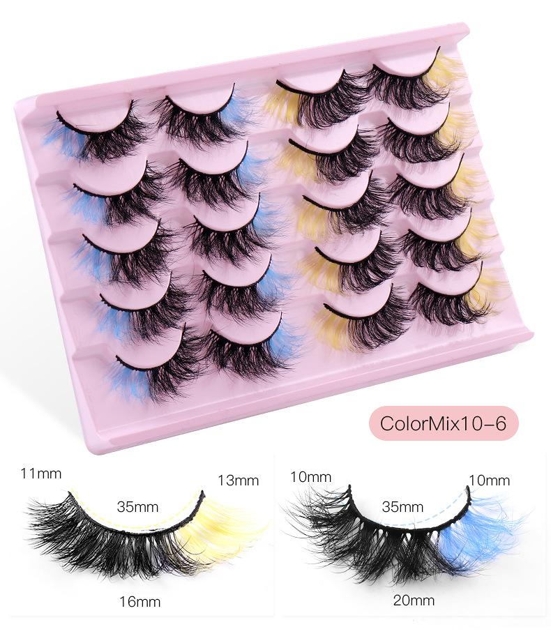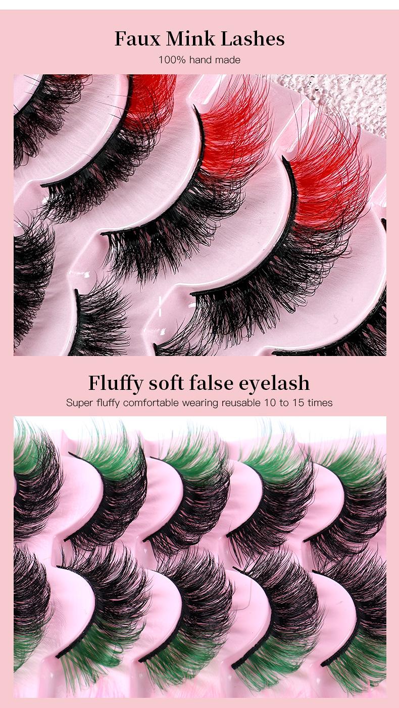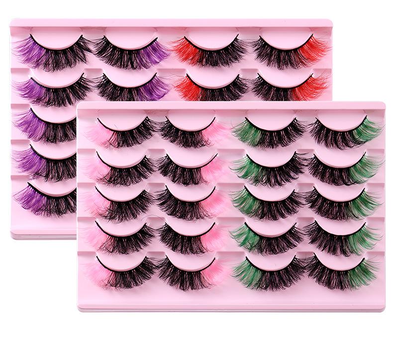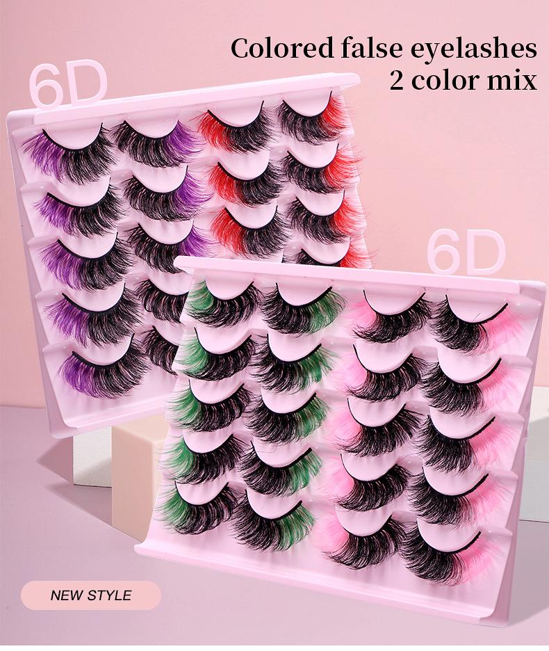 Pestañas Postizas Transfronterizas Pestañas Naturales Tridimensionales Gruesas Pestañas Enteras de Una Pieza de Color para Escenario Pestañas Postizas 6D Venta al por Mayor