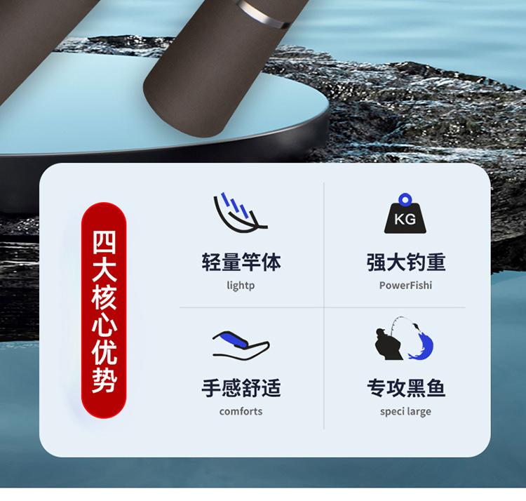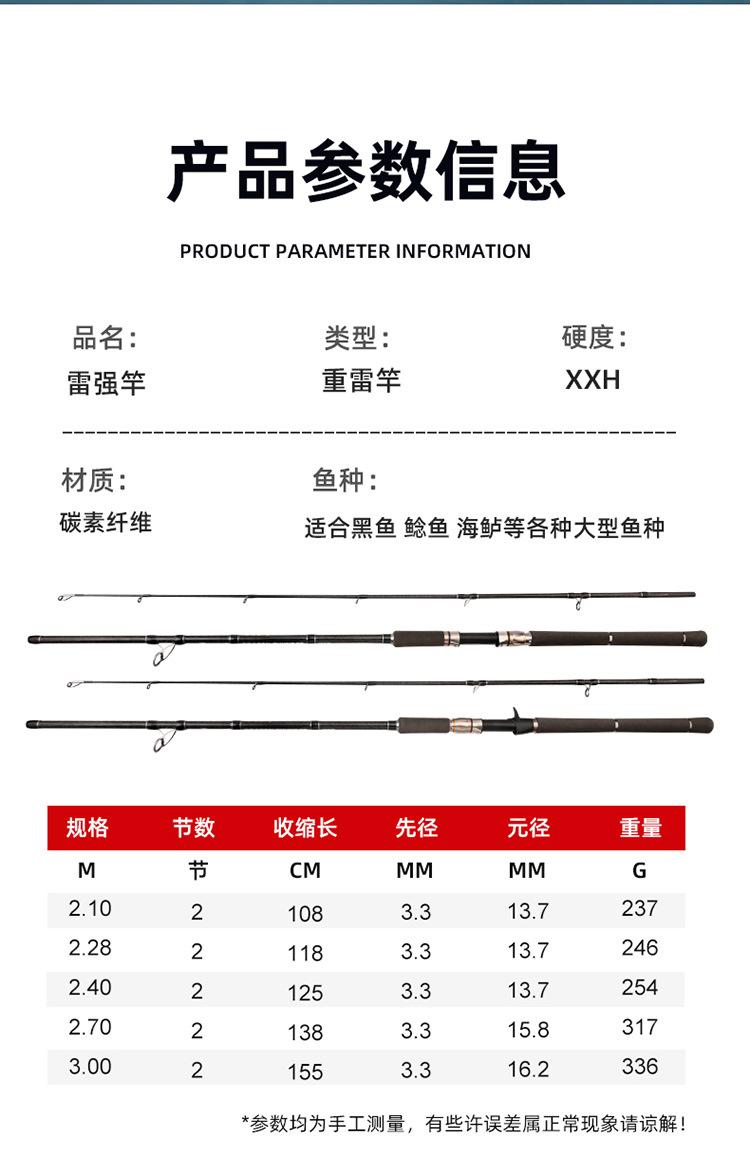 Caña de pescar Carbon Giant Super Hard Thunderbolt de 3 m, caña de pescar XXH Heavy Thunderbolt, caña de pescar negra con control remoto y ancla Thunderbolt.