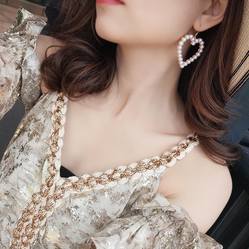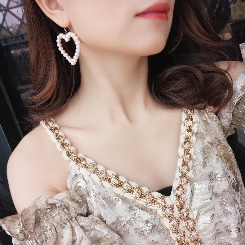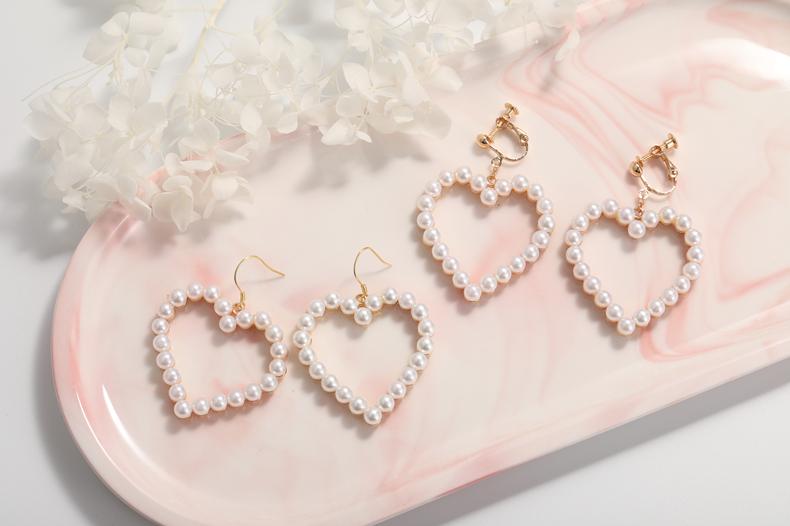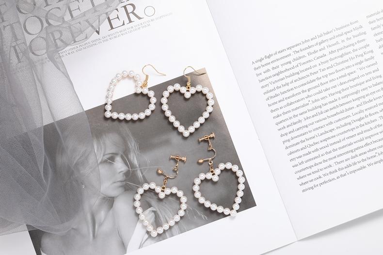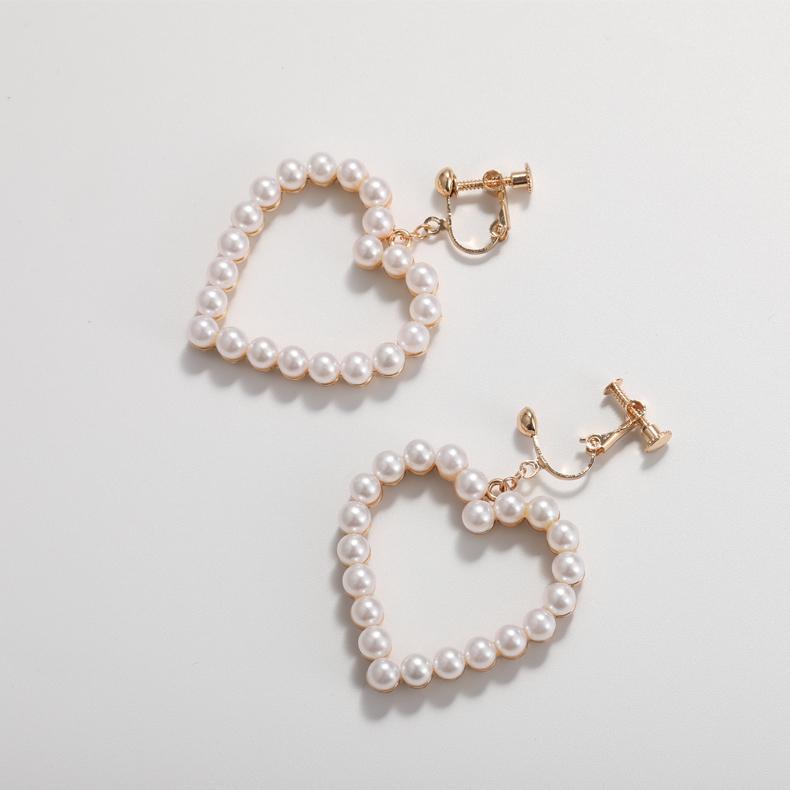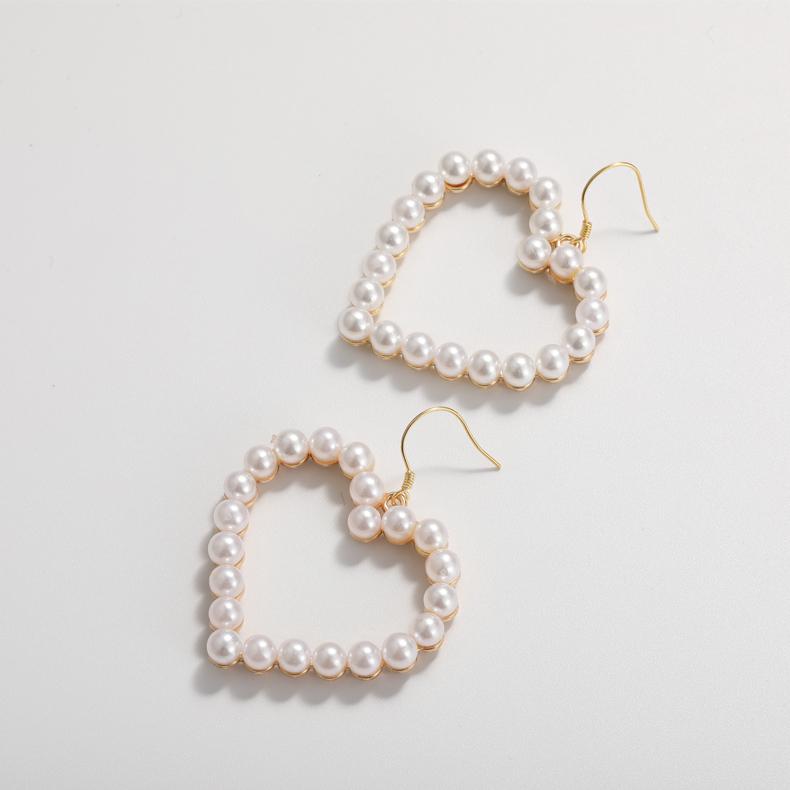 Aretes de Perlas Japonesas y Coreanas para Mujer Aretes Retro Geométricos en Forma de Corazón Aretes Simples Joyería para la Oreja para Mujer