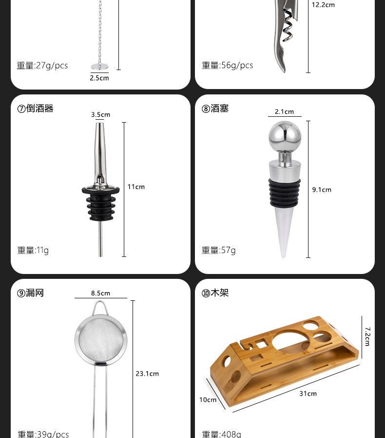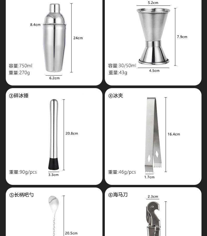 350ML bartender set (bilateral arc 13 piece set), 550ML bartender set (bilateral arc 13 piece set), 750ML bart...