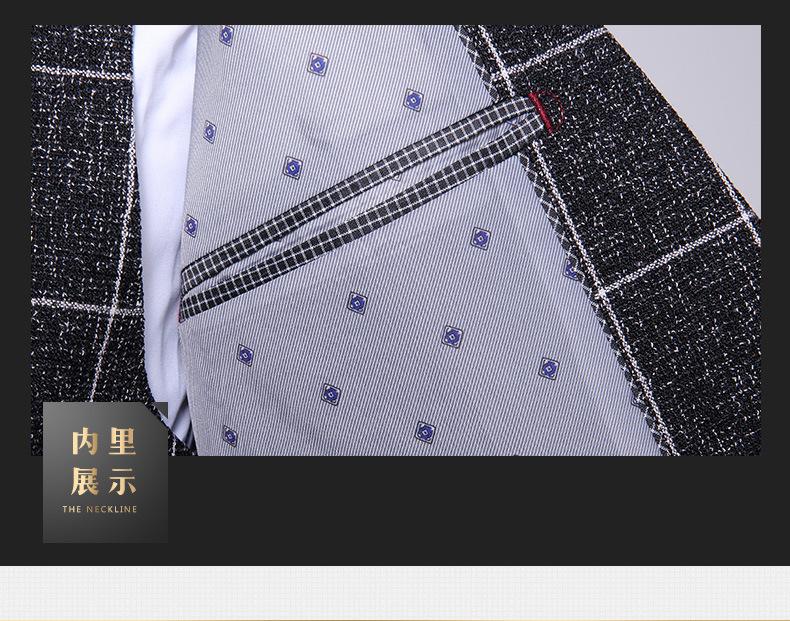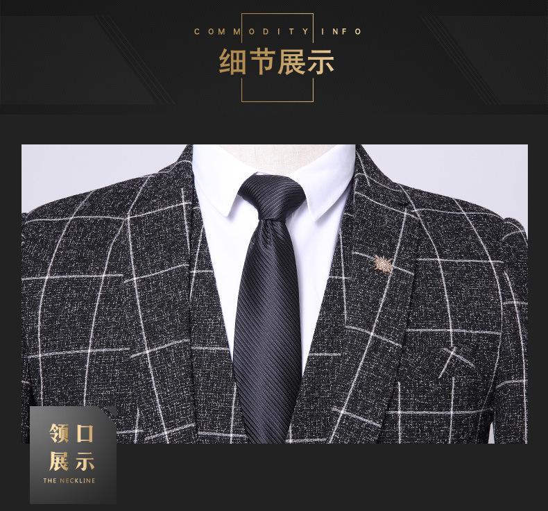 Traje Slim de Cuadros de Tres Piezas para Novio de Primavera Estilo Coreano Boda Padrinos Vestido de Hombre Venta al por Mayor