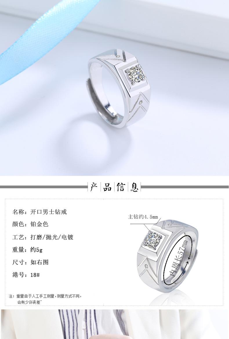 Nuevo anillo de circonita caliente para hombre, joyería, anillo de diamantes de simulación simple, anillo de apertura creativo Joker, una generación de cabello