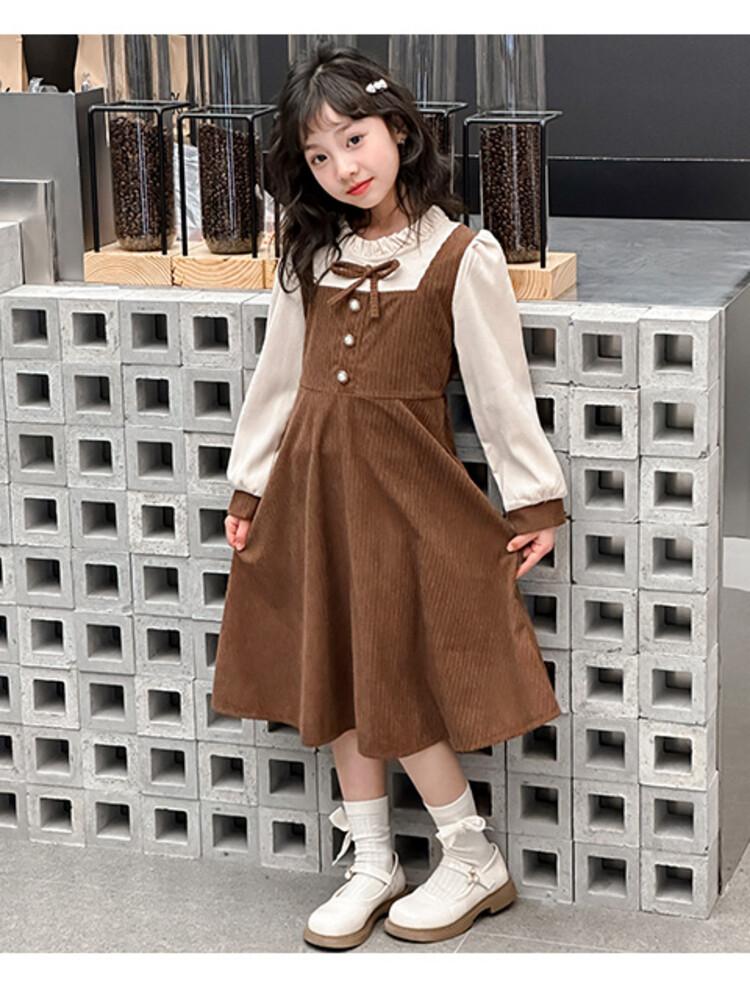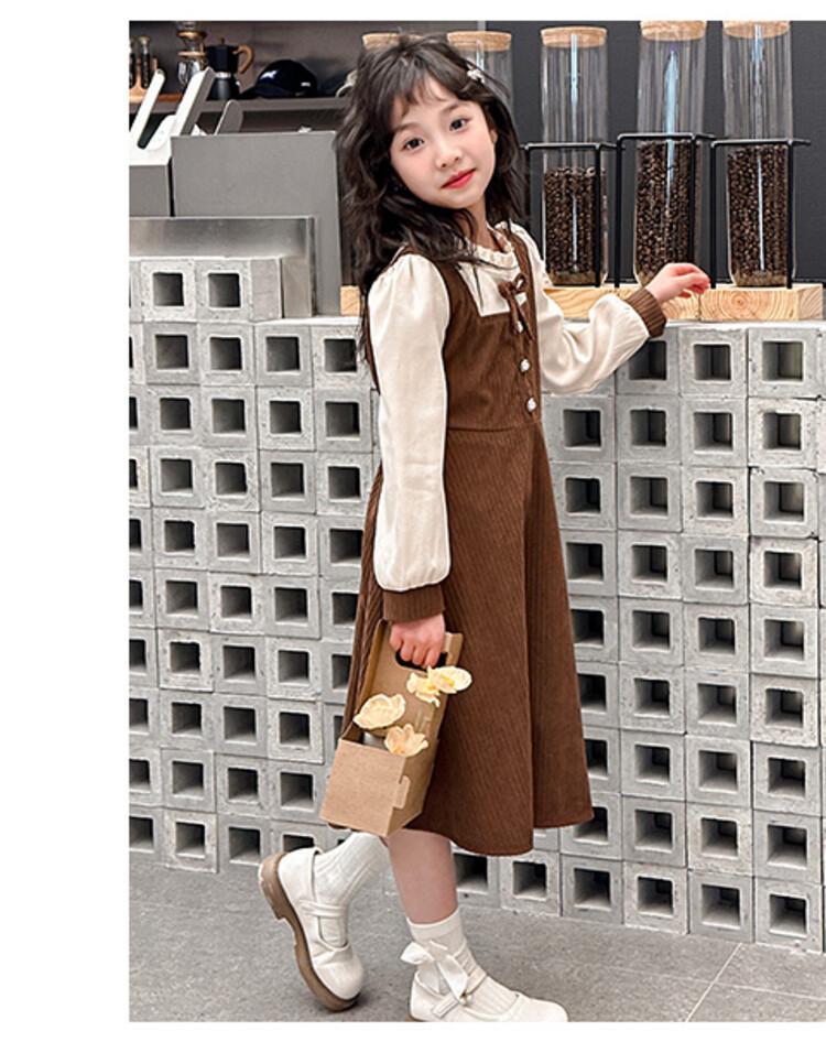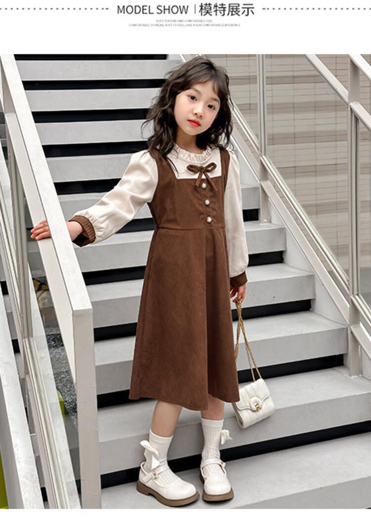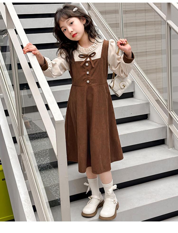Falda de niña primavera y otoño nueva moda elegante falda de princesa niñas grandes niñas falso vestido de dos piezas vestido de otoño