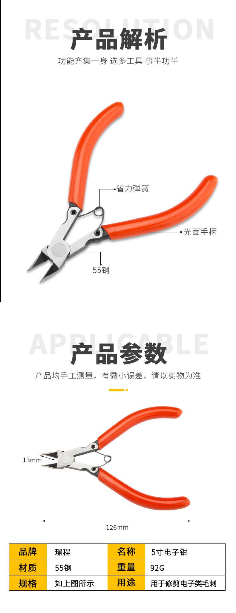 Alicates de boca de agua de 5 pulgadas con hoja fina de acero 55, alicates electrónicos de boca puntiaguda de grado industrial, línea de corte eléctrico modelo Gundam, alicates de corte especiales