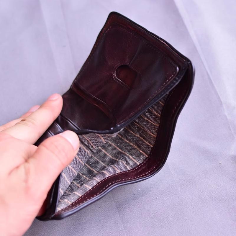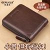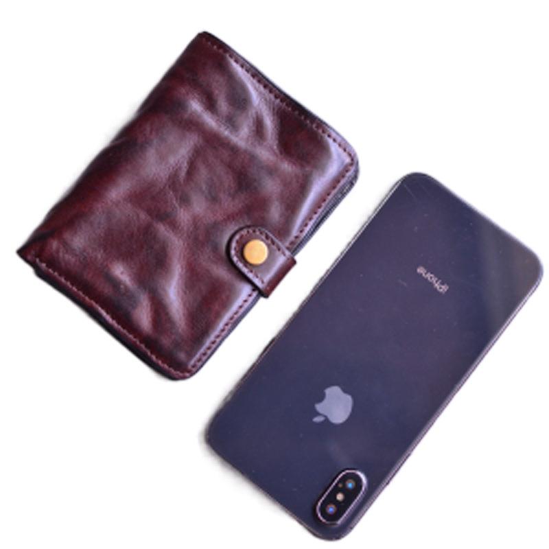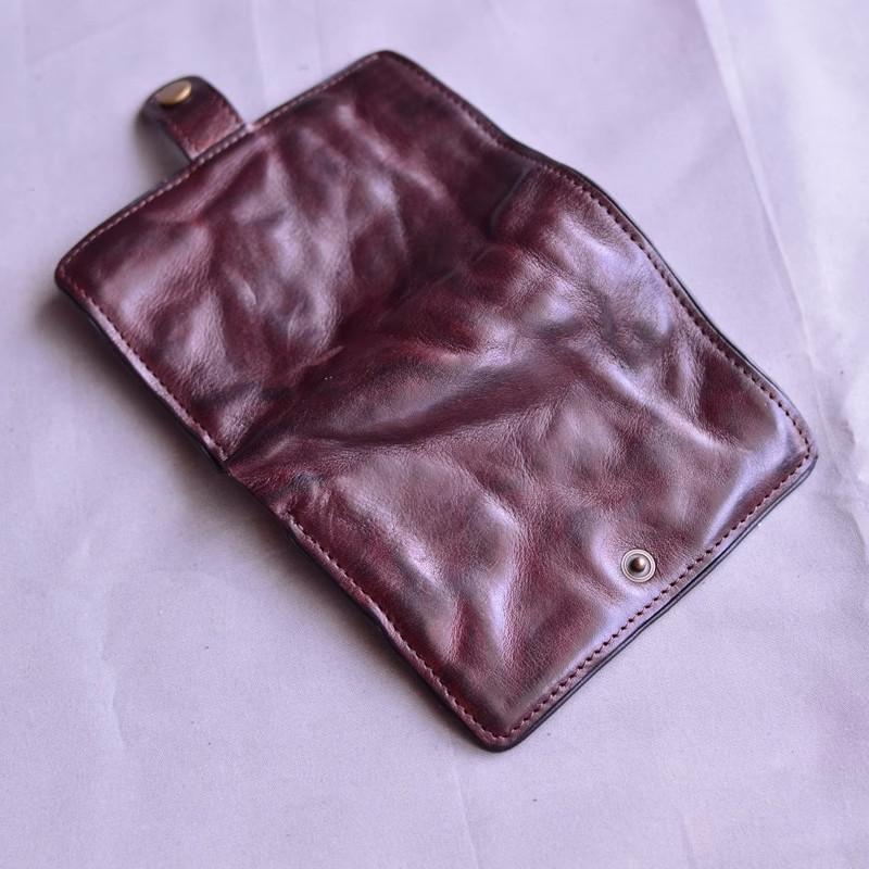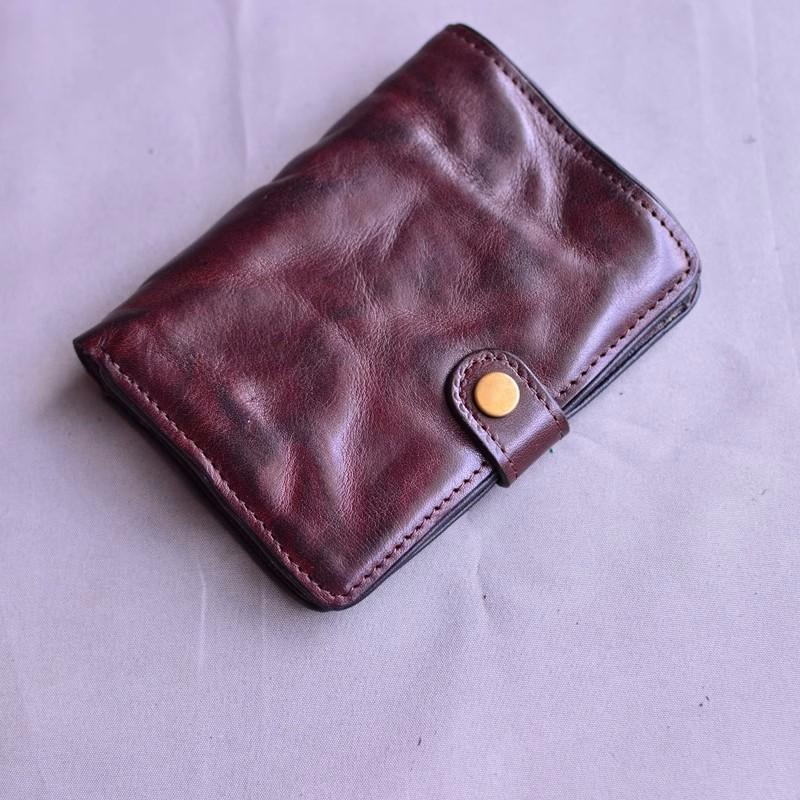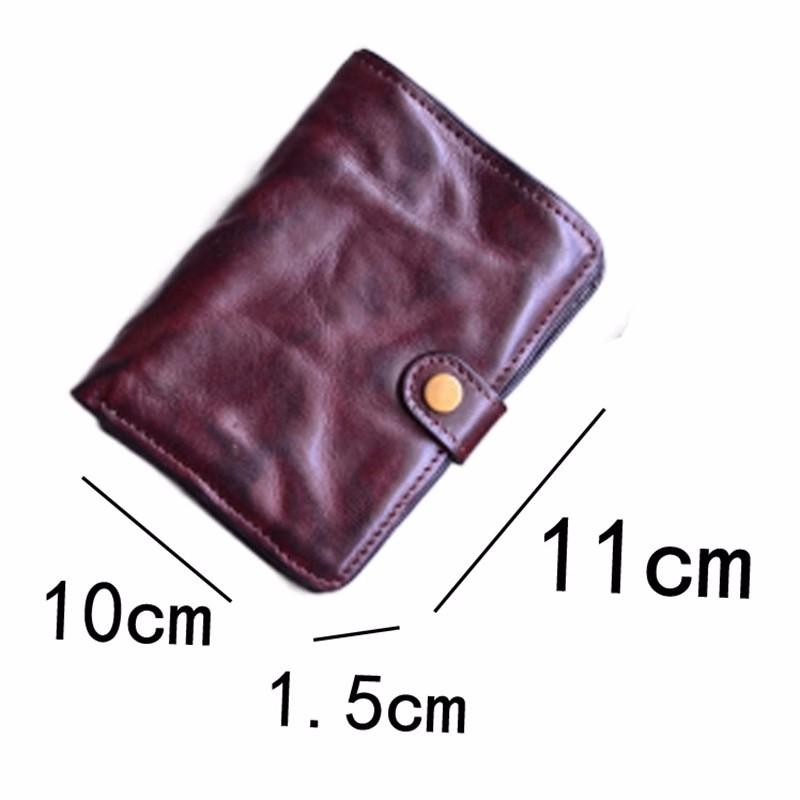 Cartera pequeña vintage de piel auténtica para hombre, con efecto de volante lavado, informal, para carnet de conducir, con capa superior de piel de vaca.